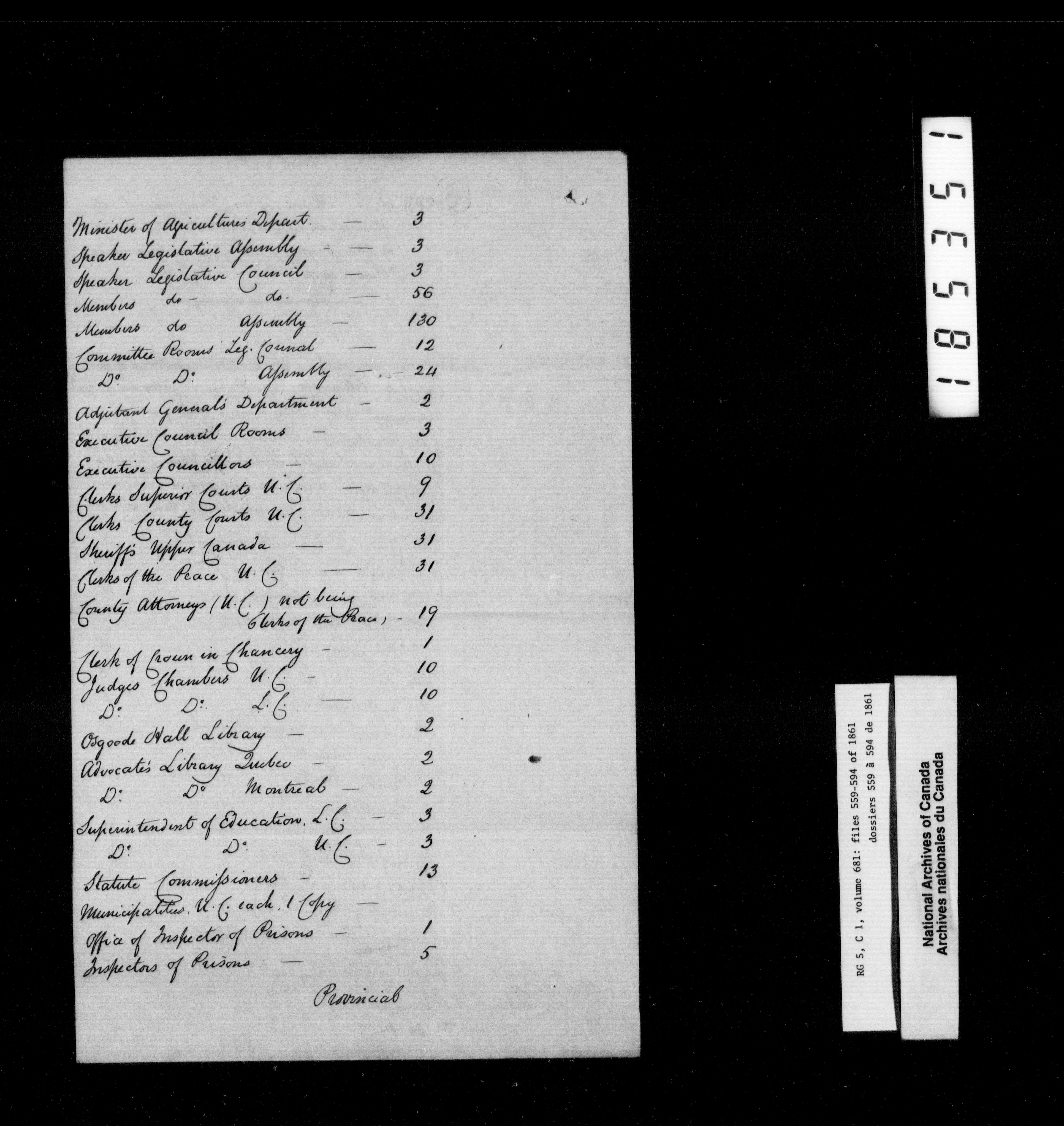 Canada West : Provincial Secretary, numbered correspondence files, 1844 to 1867 - 2477