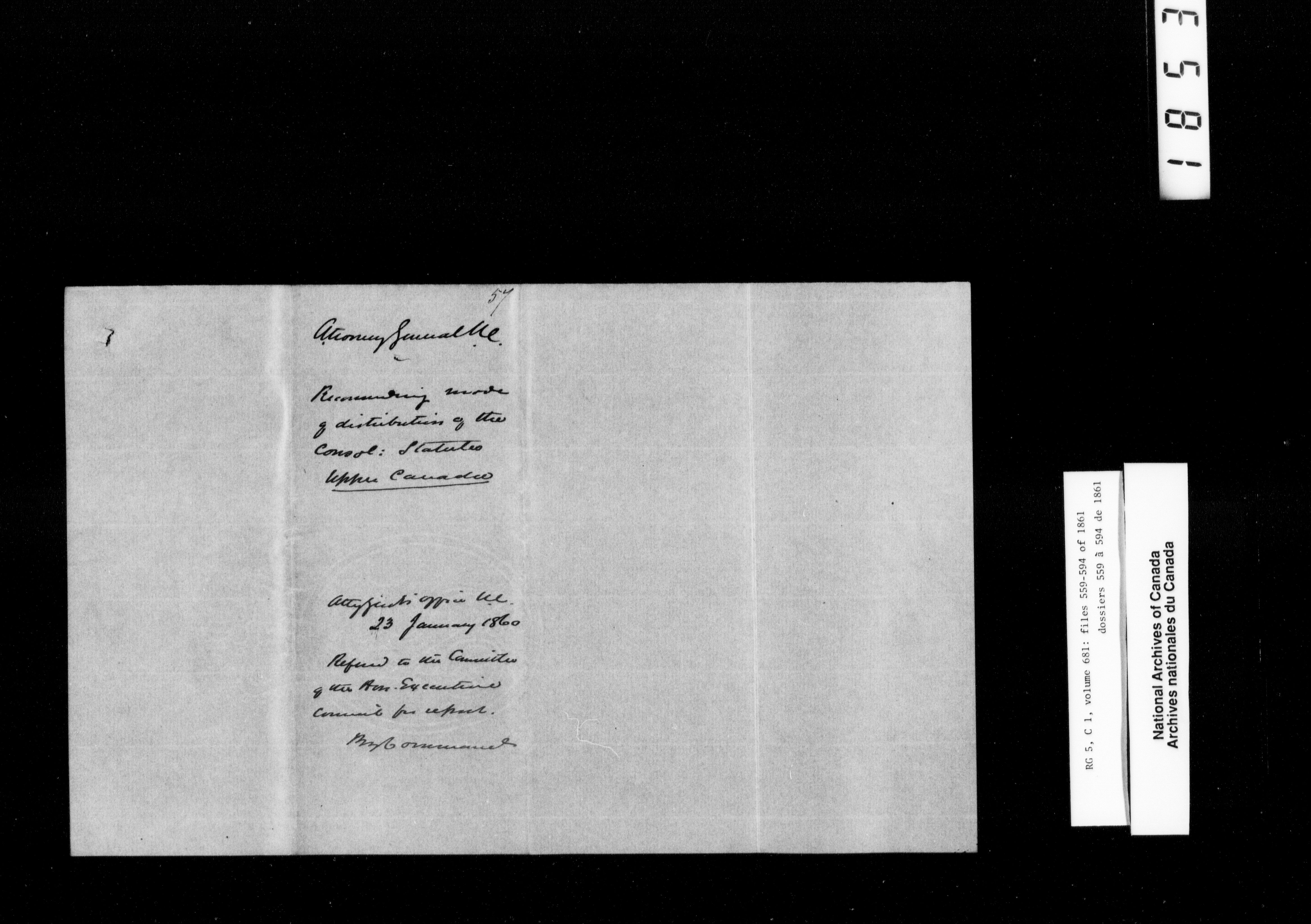 Canada West : Provincial Secretary, numbered correspondence files, 1844 to 1867 - 2477