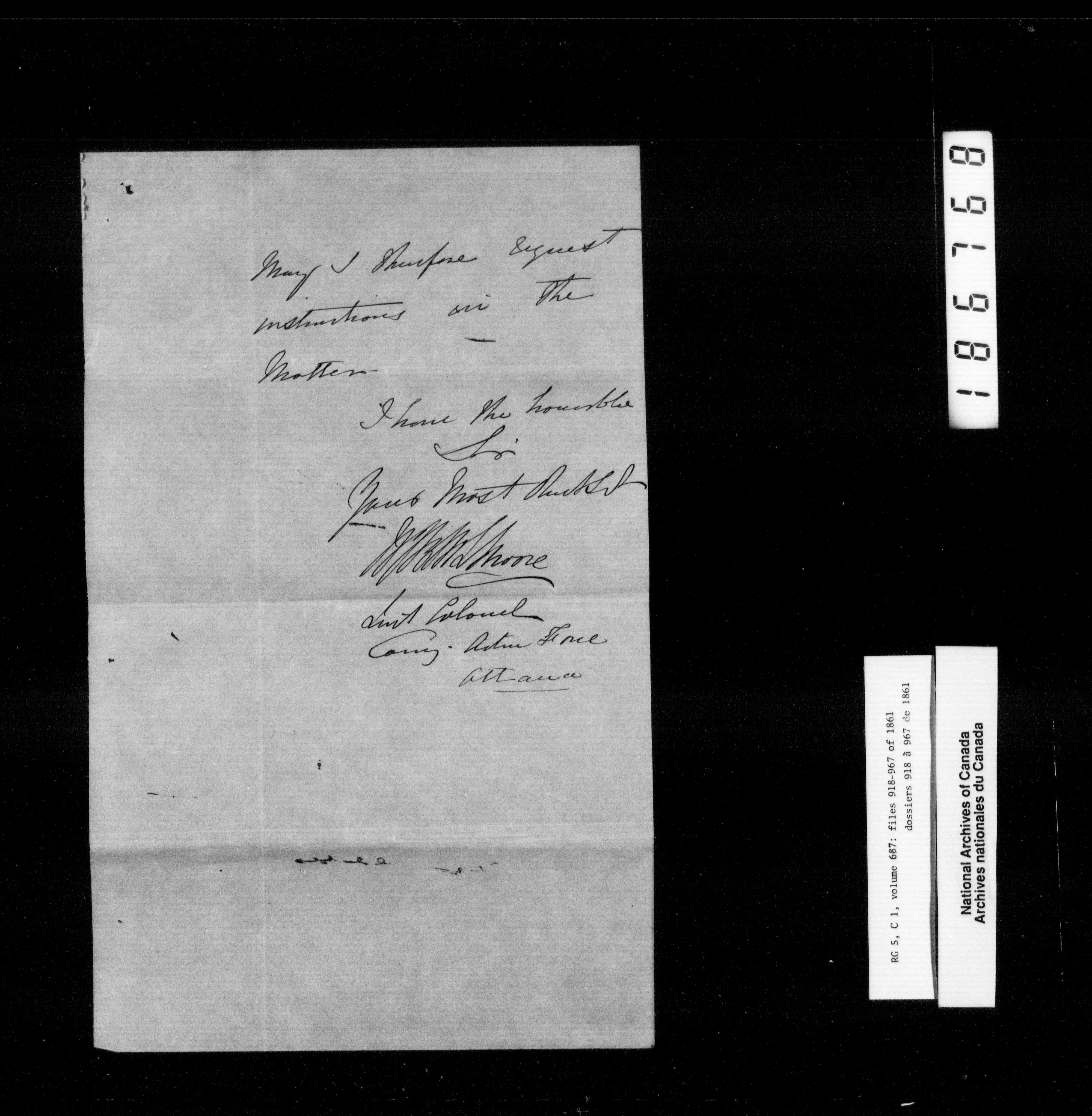 Canada West : Provincial Secretary, numbered correspondence files, 1844 to 1867 : H-2478