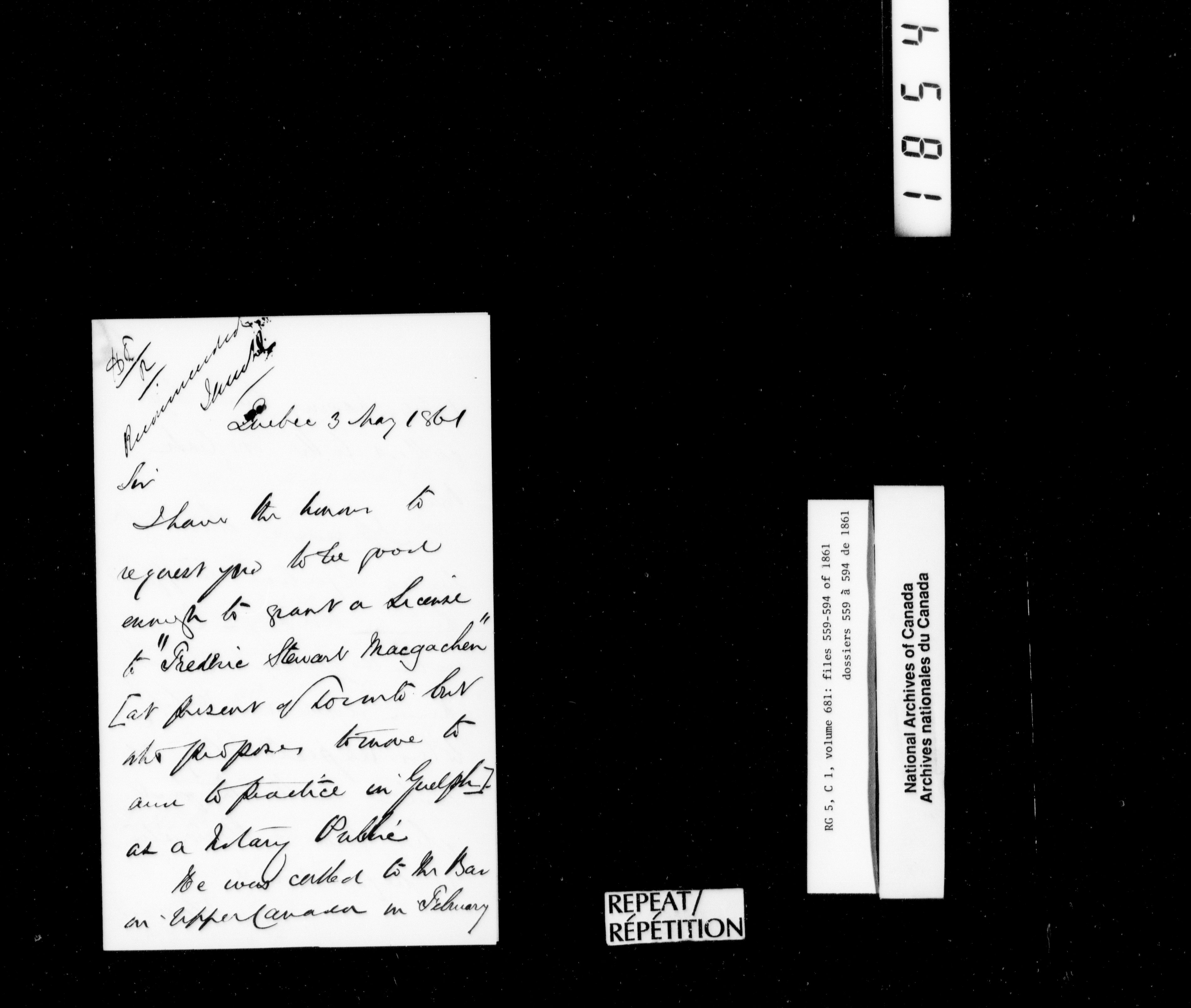 Canada West : Provincial Secretary, numbered correspondence files, 1844 to 1867 - 2478