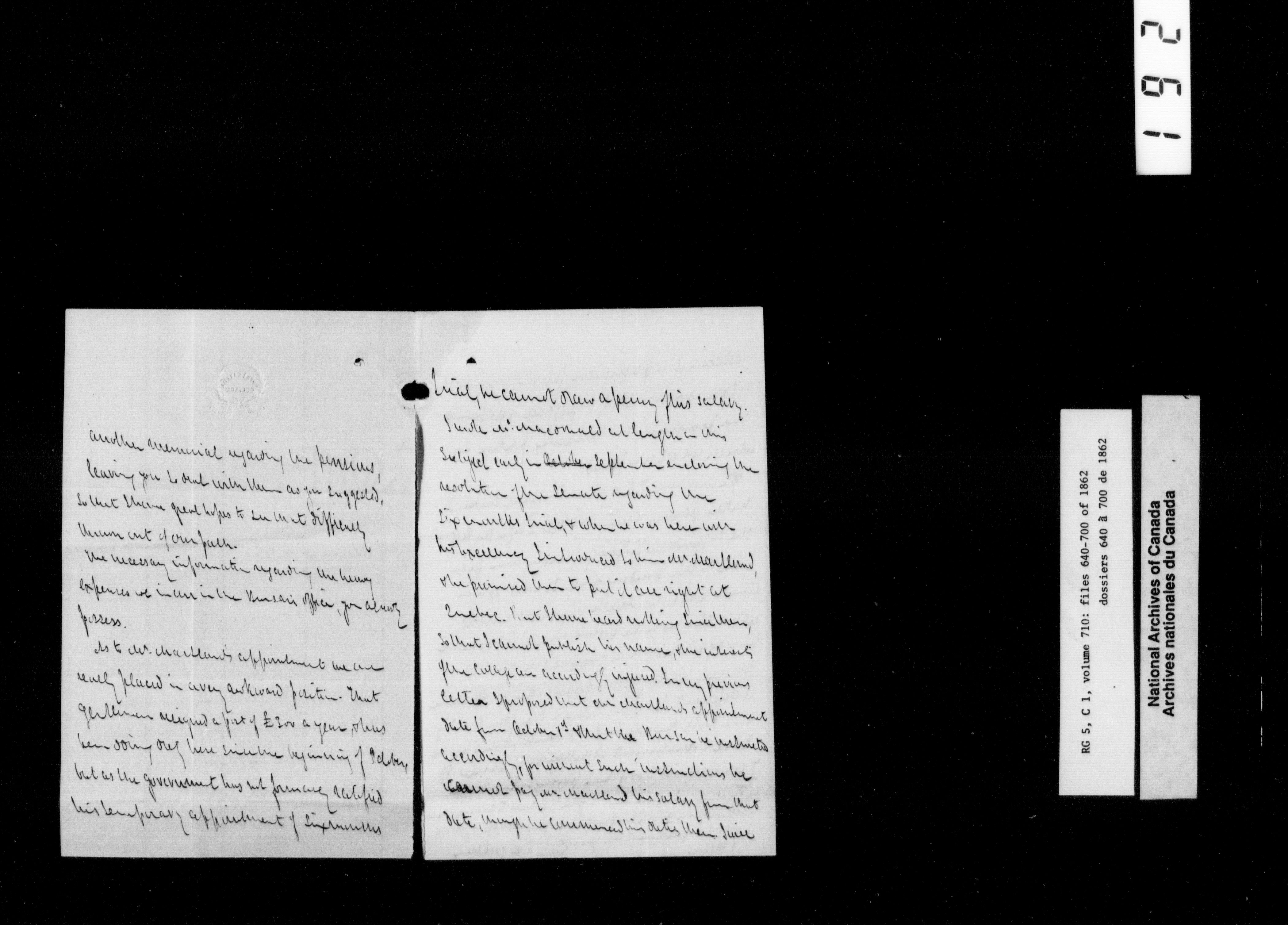 Canada West : Provincial Secretary, numbered correspondence files, 1844 to 1867 : H-2482