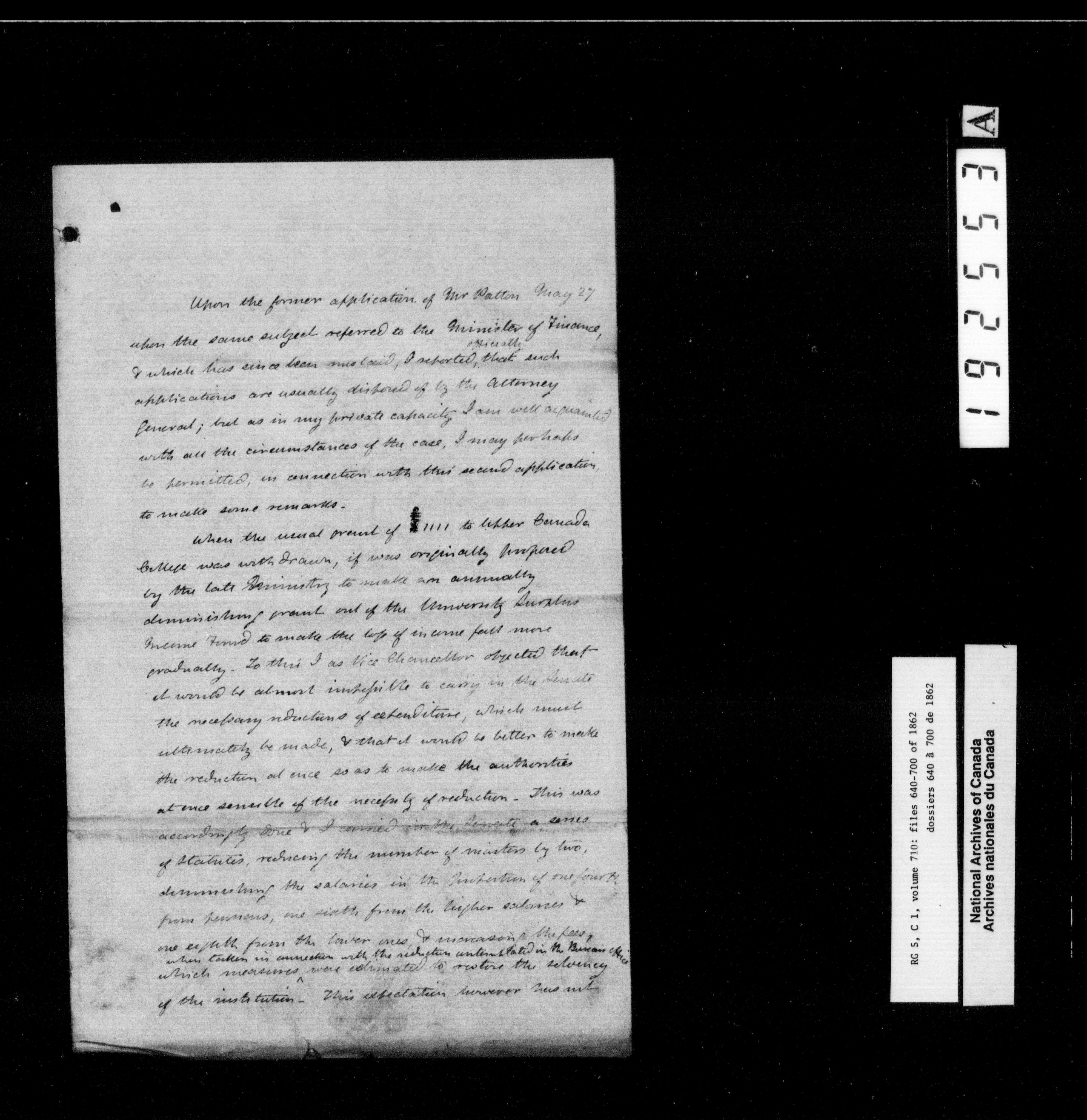 Canada West : Provincial Secretary, numbered correspondence files, 1844 to 1867 - 2482