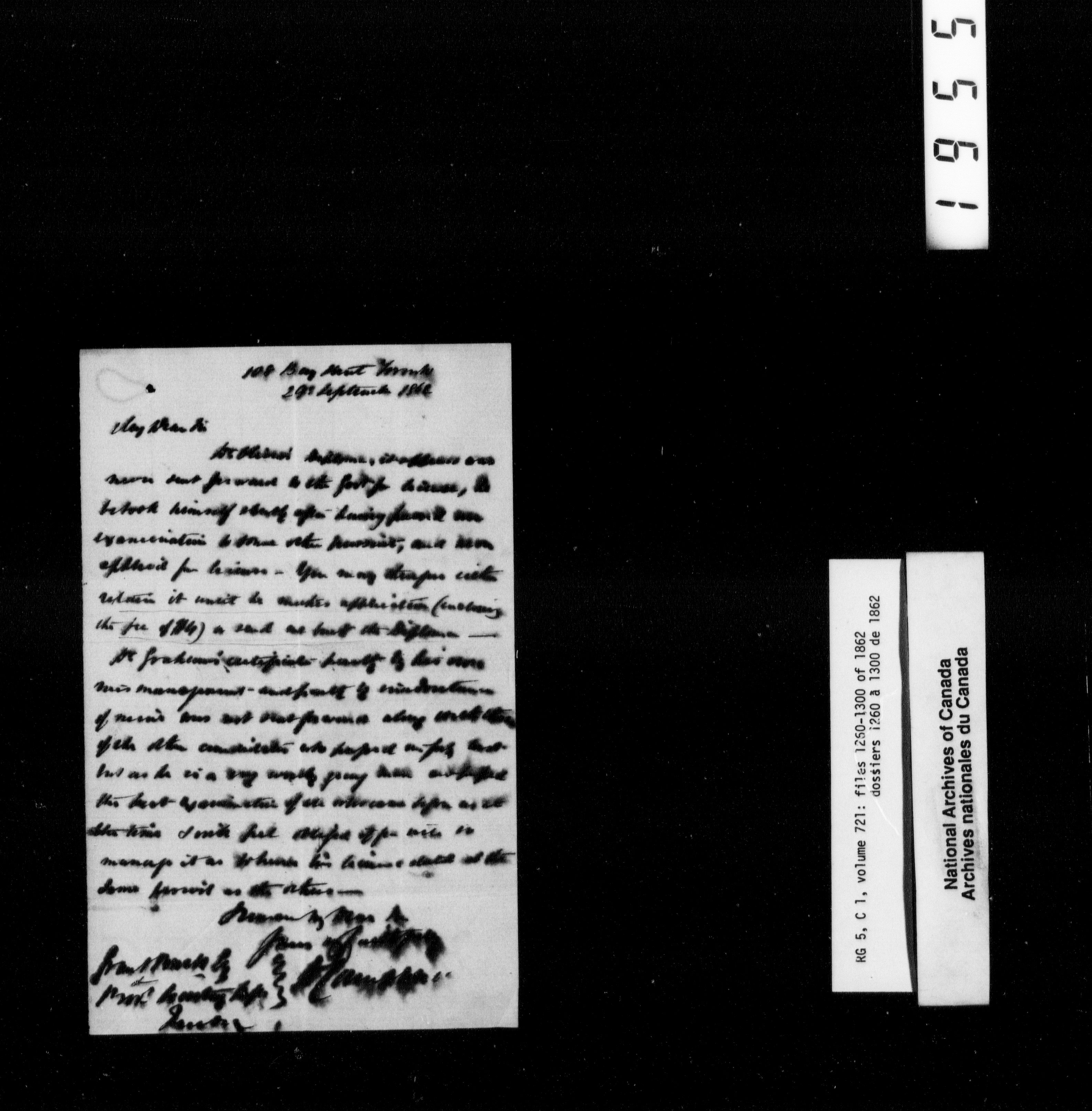 Canada West : Provincial Secretary, numbered correspondence files, 1844 to 1867 - 2485