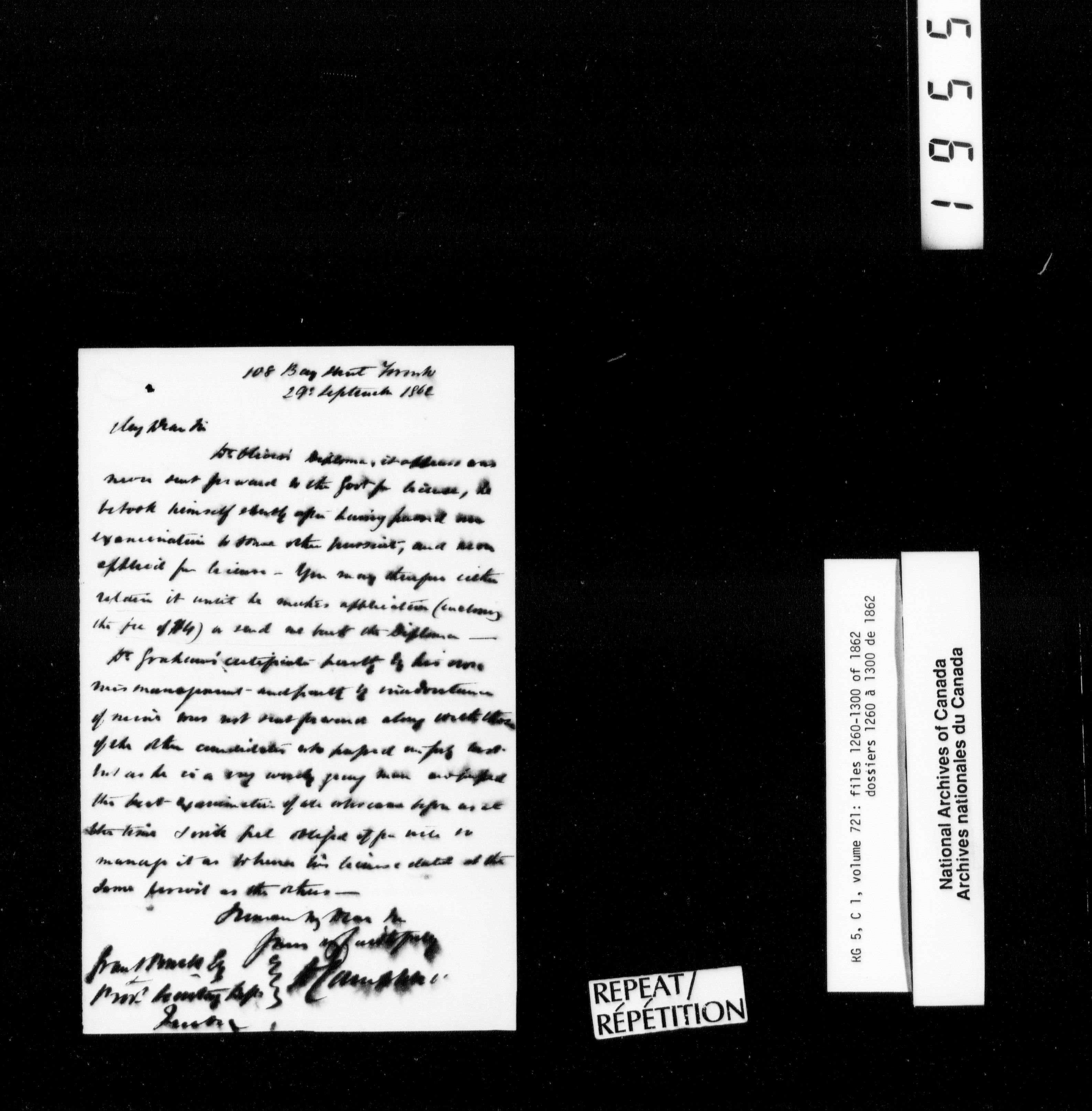 Canada West : Provincial Secretary, numbered correspondence files, 1844 to 1867 - 2485