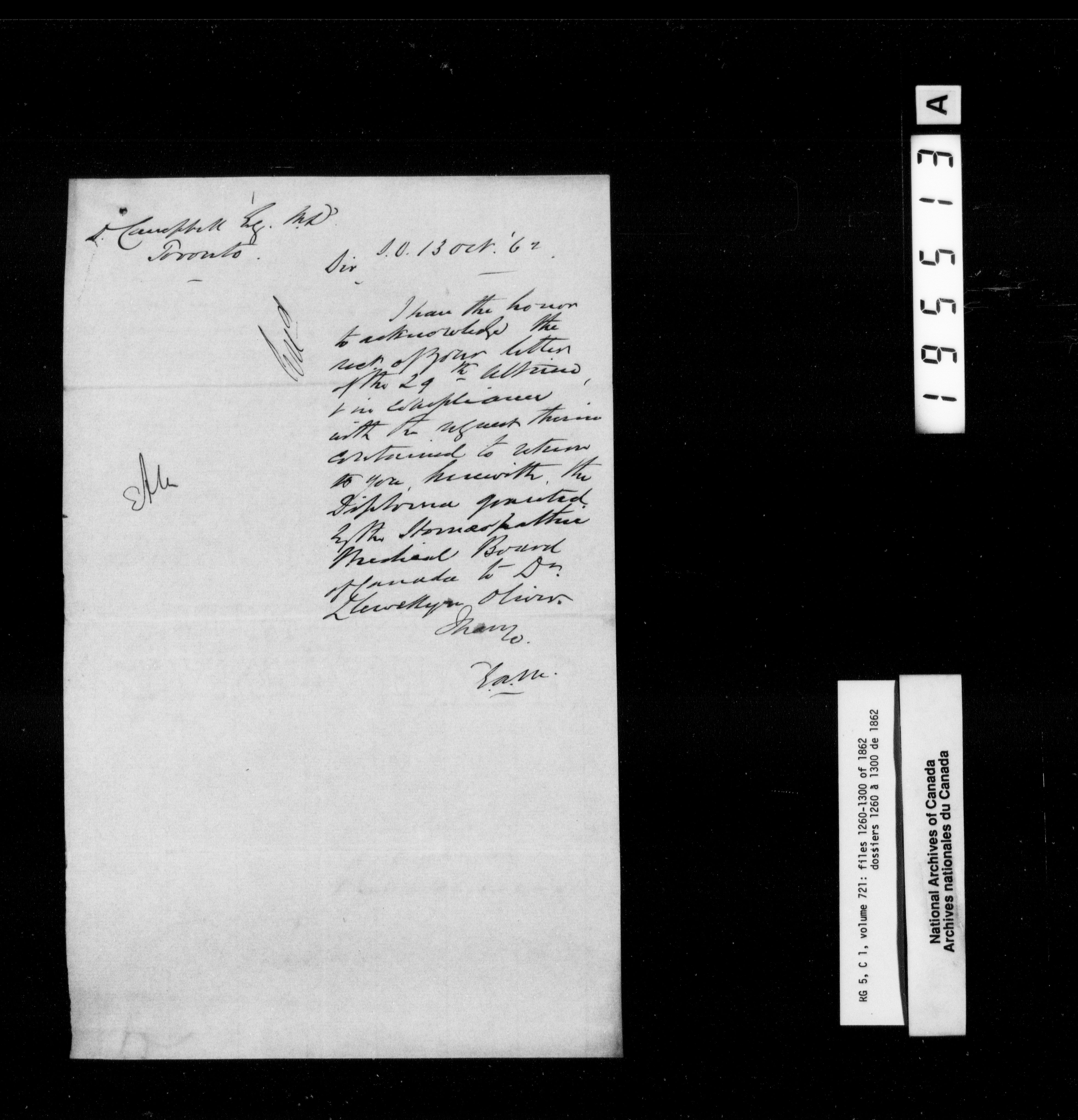 Canada West : Provincial Secretary, numbered correspondence files, 1844 to 1867 - 2485