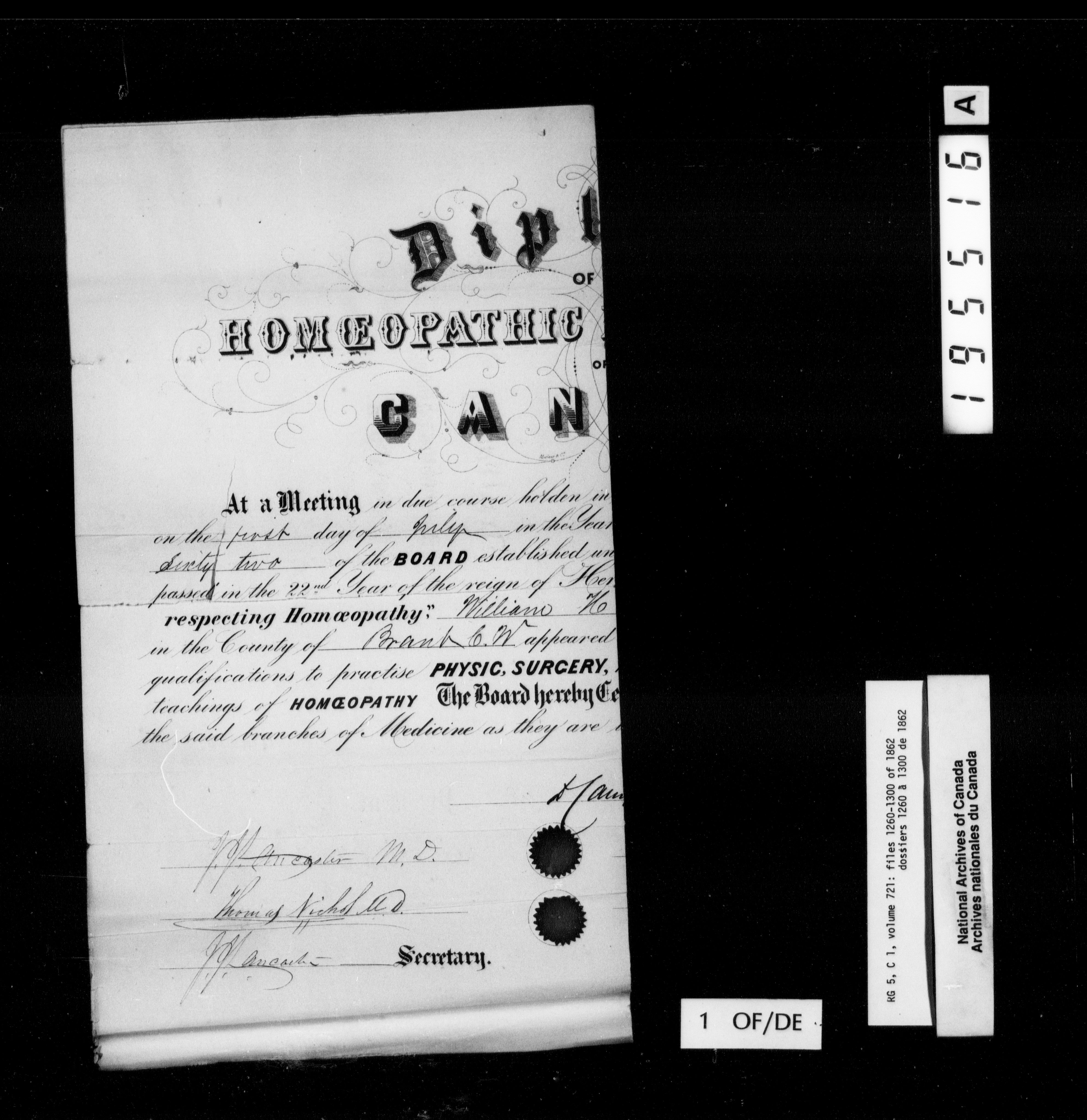 Canada West : Provincial Secretary, numbered correspondence files, 1844 to 1867 - 2485