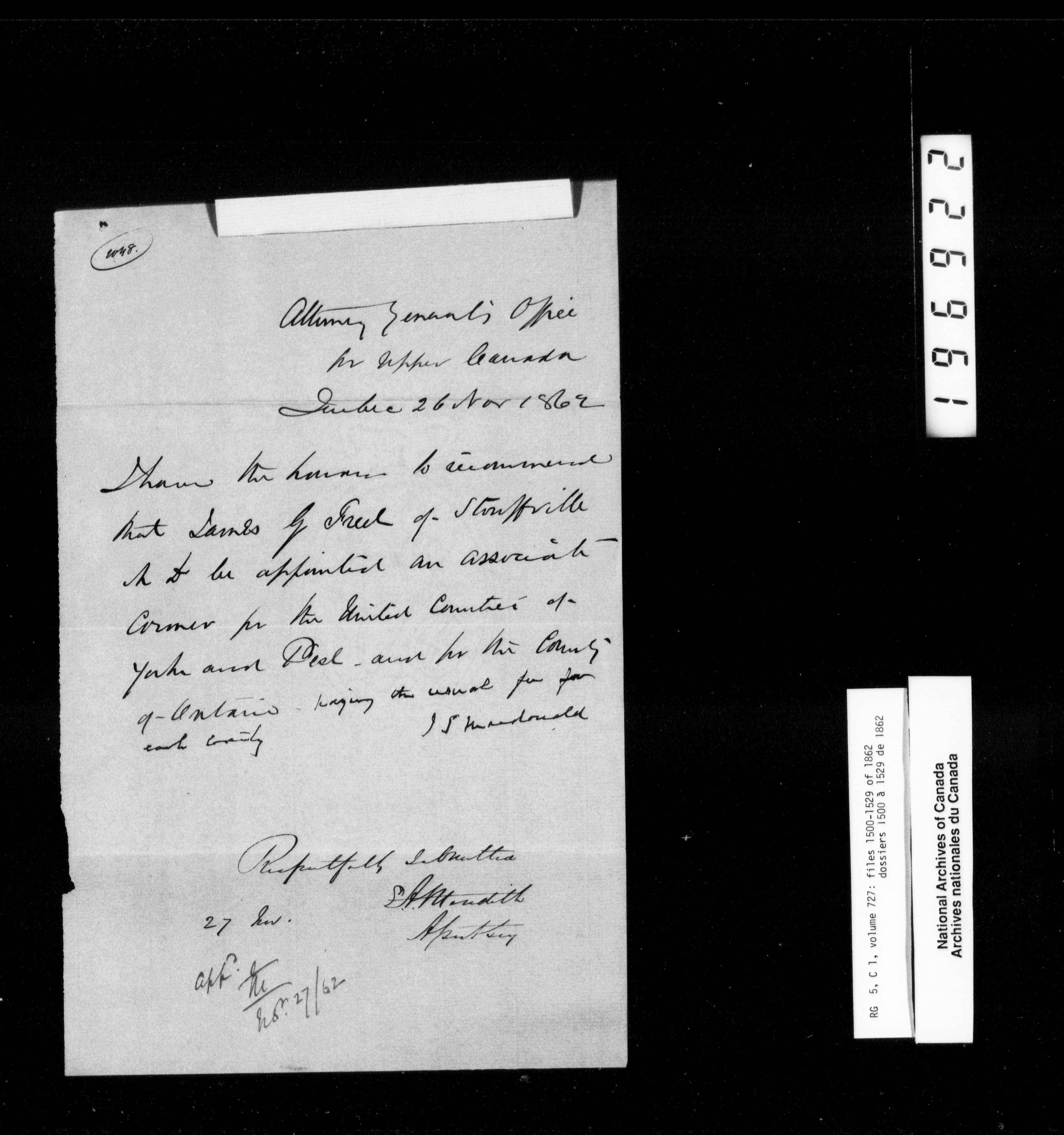 Canada West : Provincial Secretary, numbered correspondence files, 1844 to 1867 - 2486