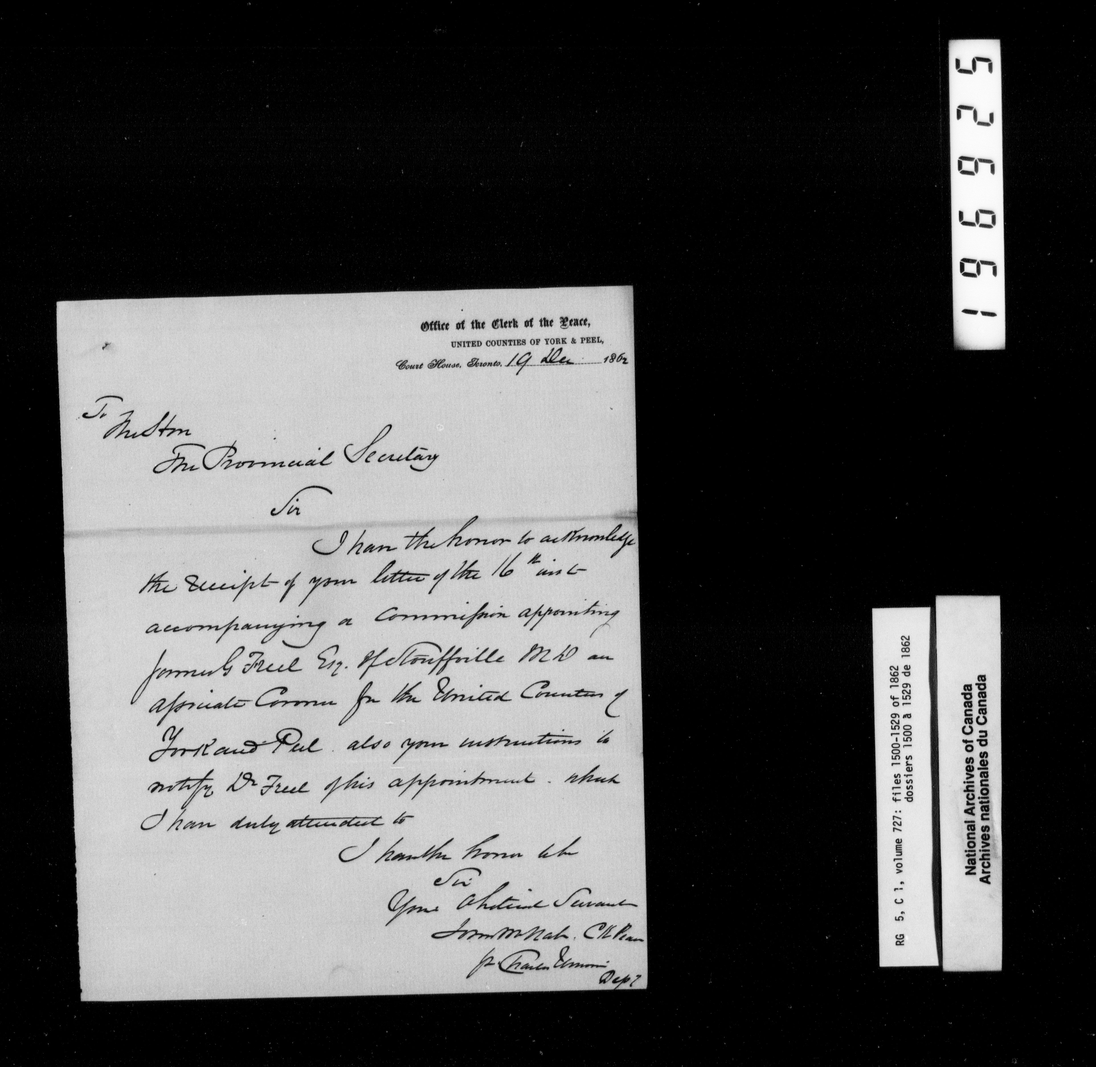 Canada West : Provincial Secretary, numbered correspondence files, 1844 to 1867 - 2486