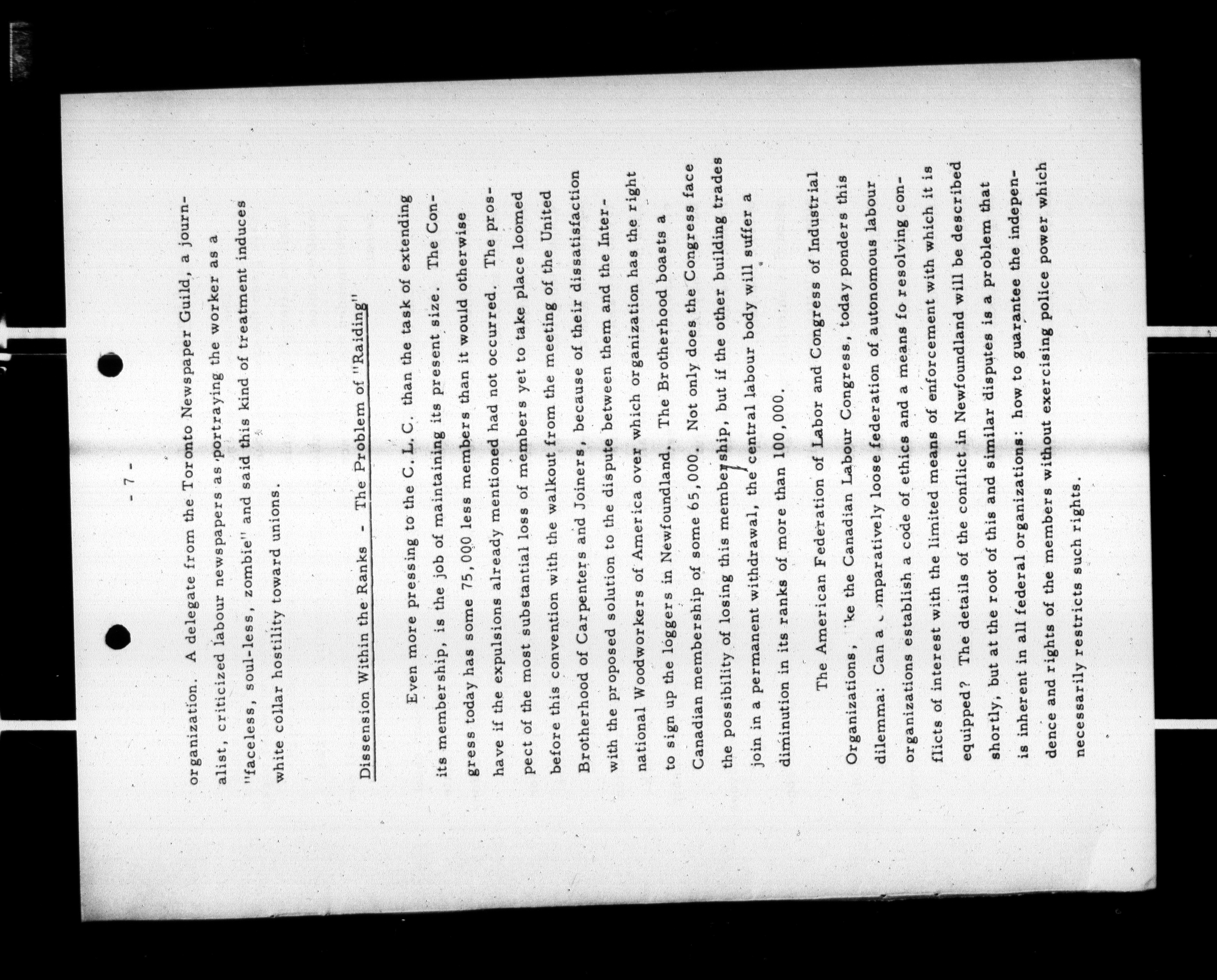 Canadian Labour Congress : William Dodge's files (Executive Vice President and Secretary-Treasurer of the CLC) : H-249