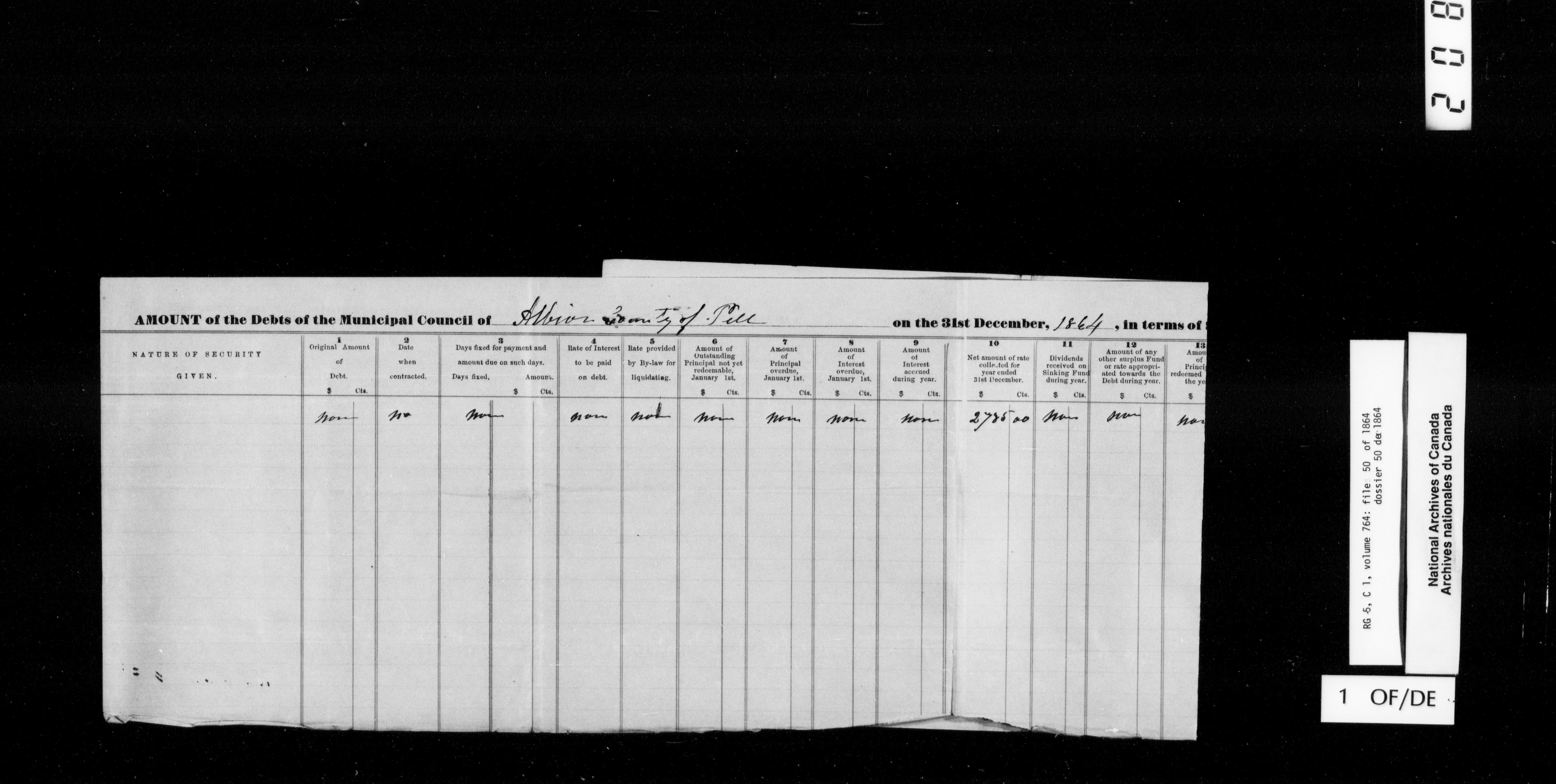 Canada West : Provincial Secretary, numbered correspondence files, 1844 to 1867 - 2494