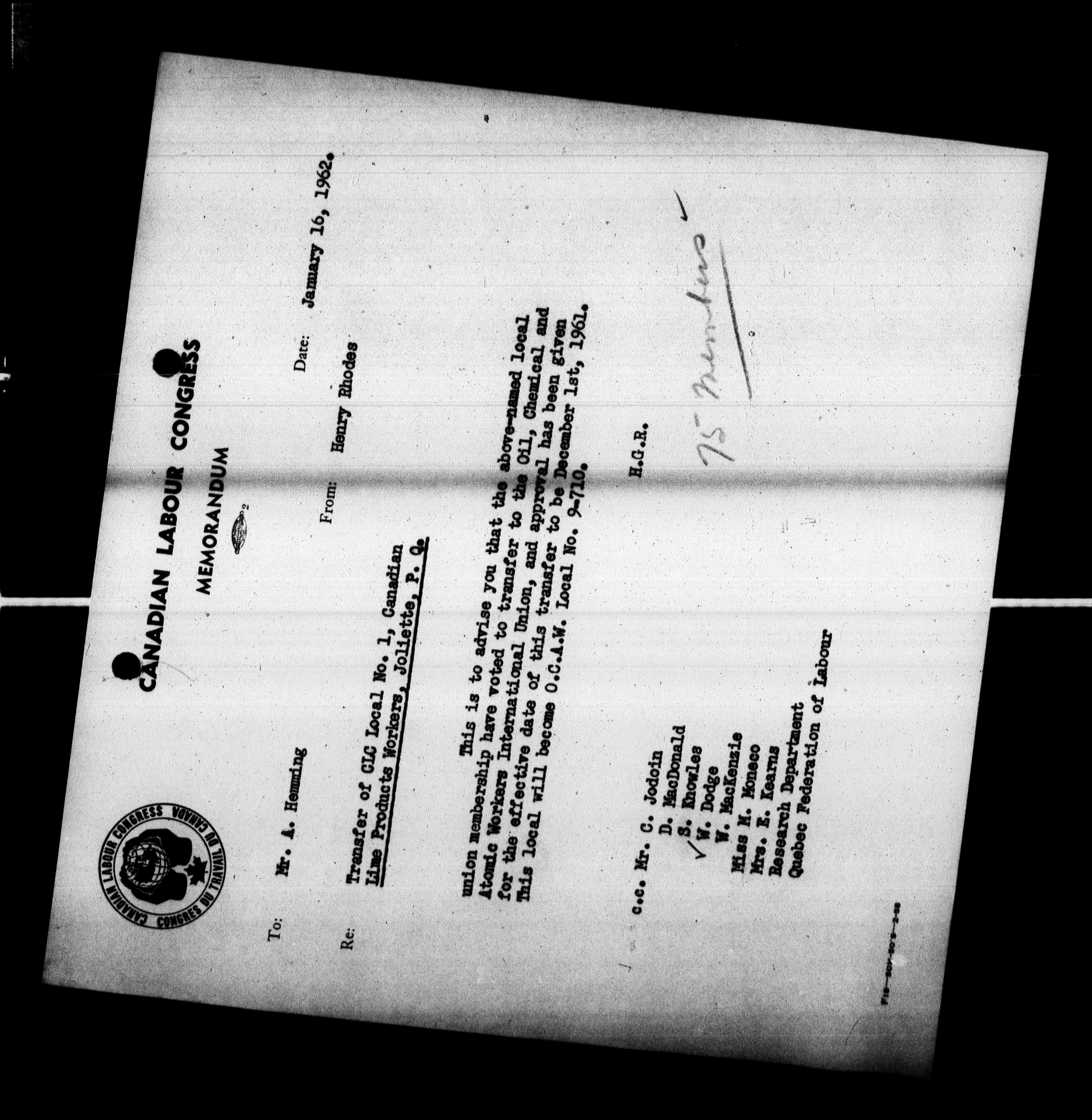 Canadian Labour Congress : William Dodge's (Executive Vice President and Secretary-Treasurer) files - 250