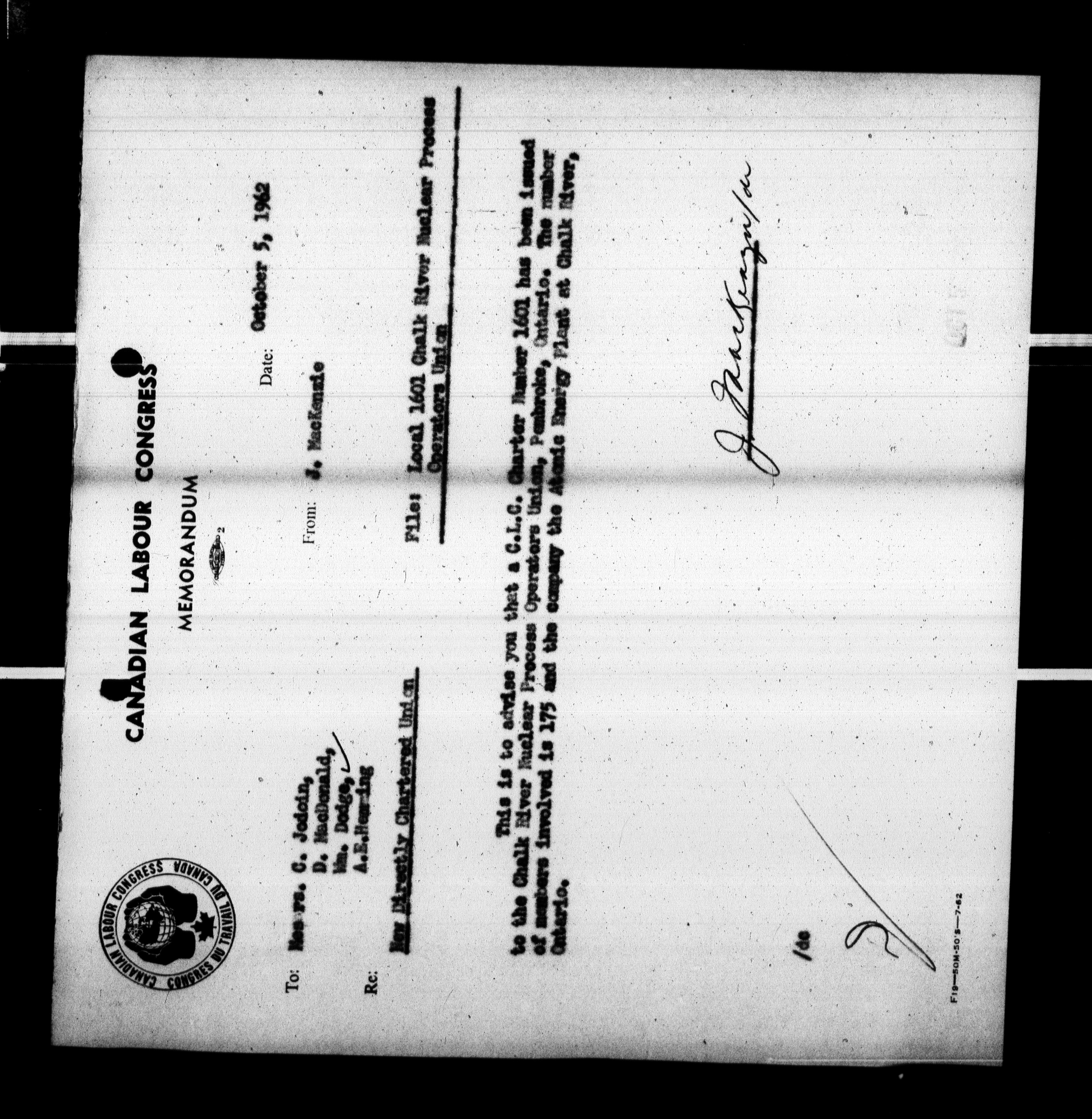 Canadian Labour Congress : William Dodge's (Executive Vice President and Secretary-Treasurer) files - 250