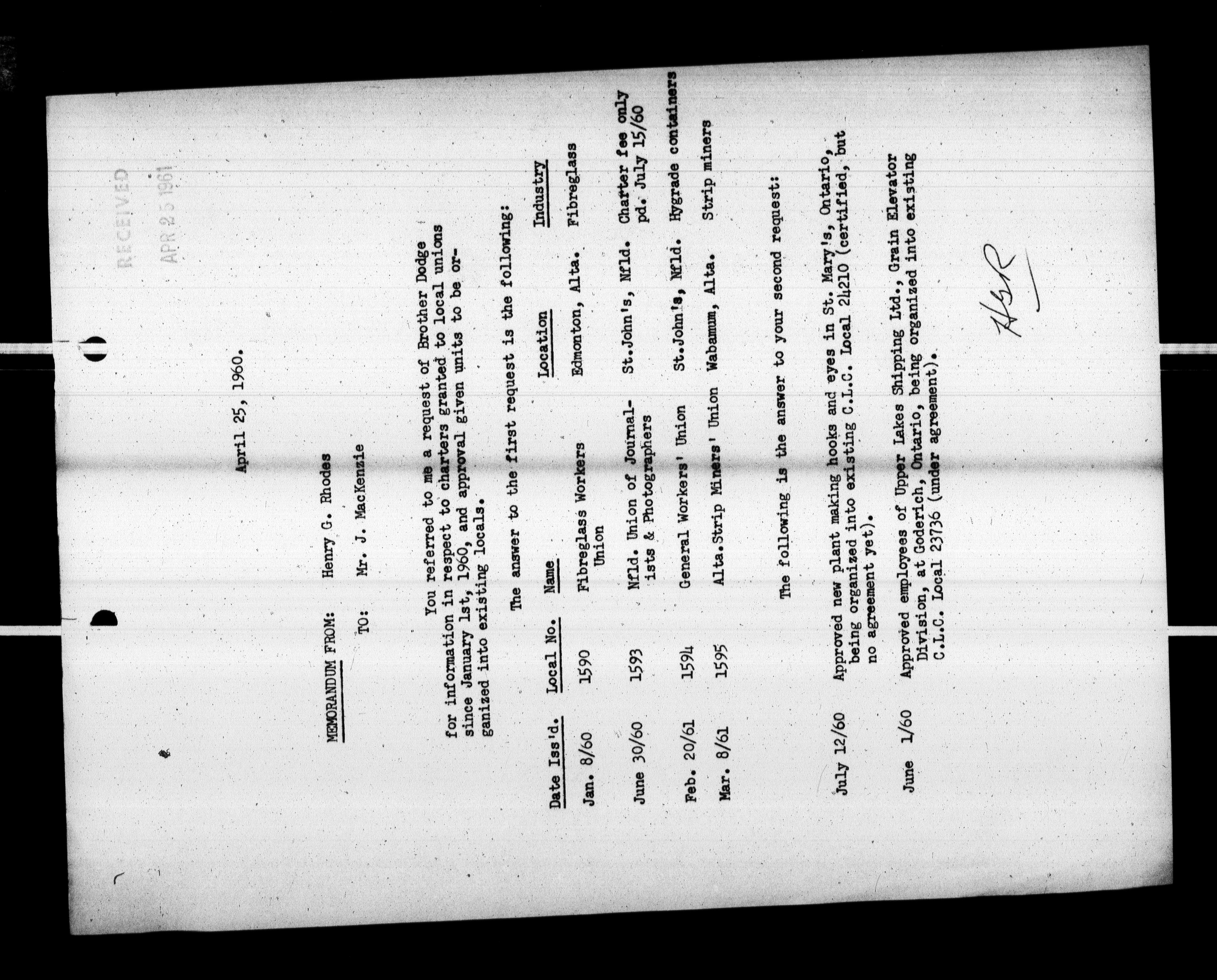 Canadian Labour Congress : William Dodge's (Executive Vice President and Secretary-Treasurer) files - 250