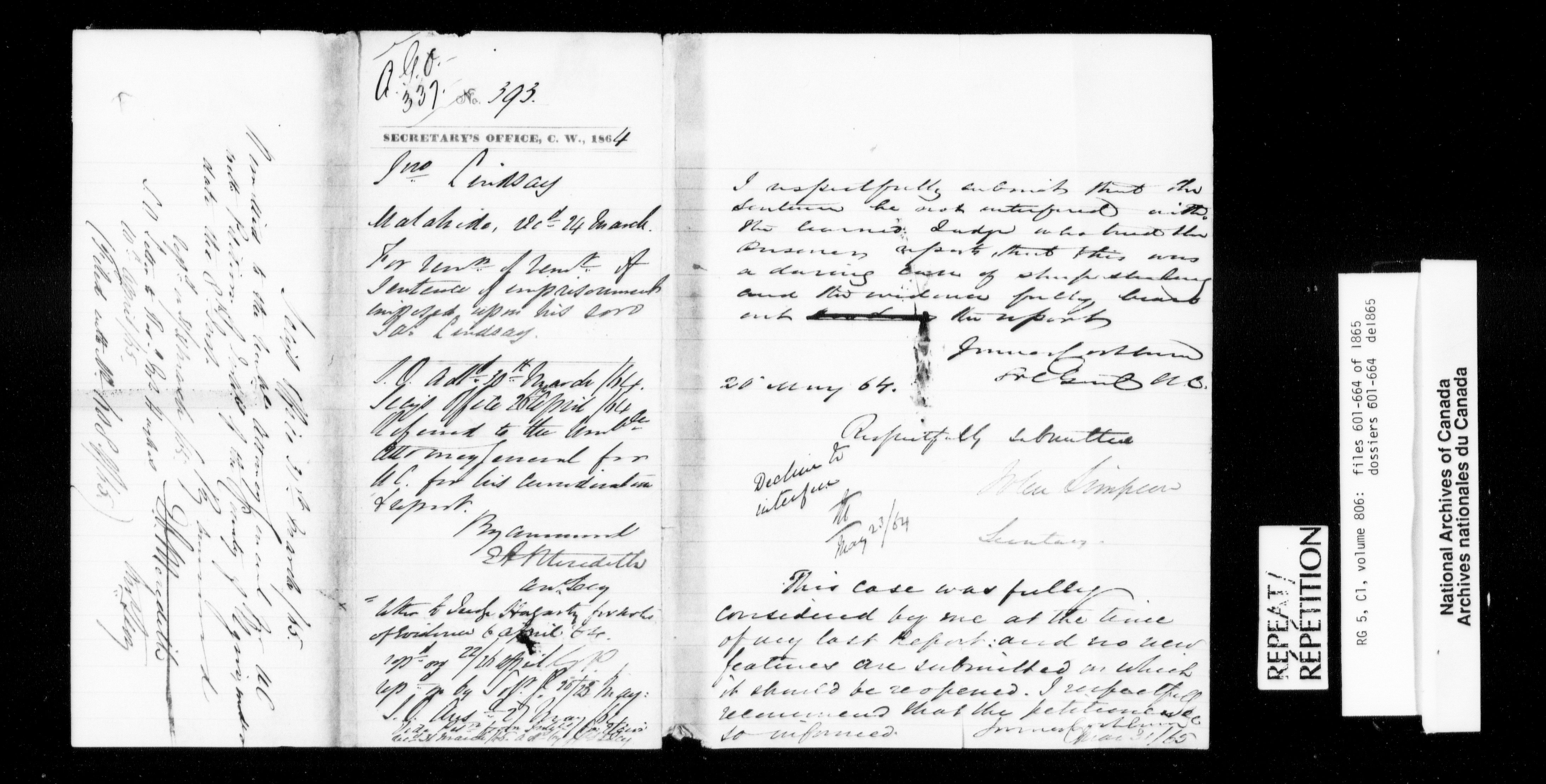 Canada West : Provincial Secretary, numbered correspondence files, 1844 to 1867 - 2502