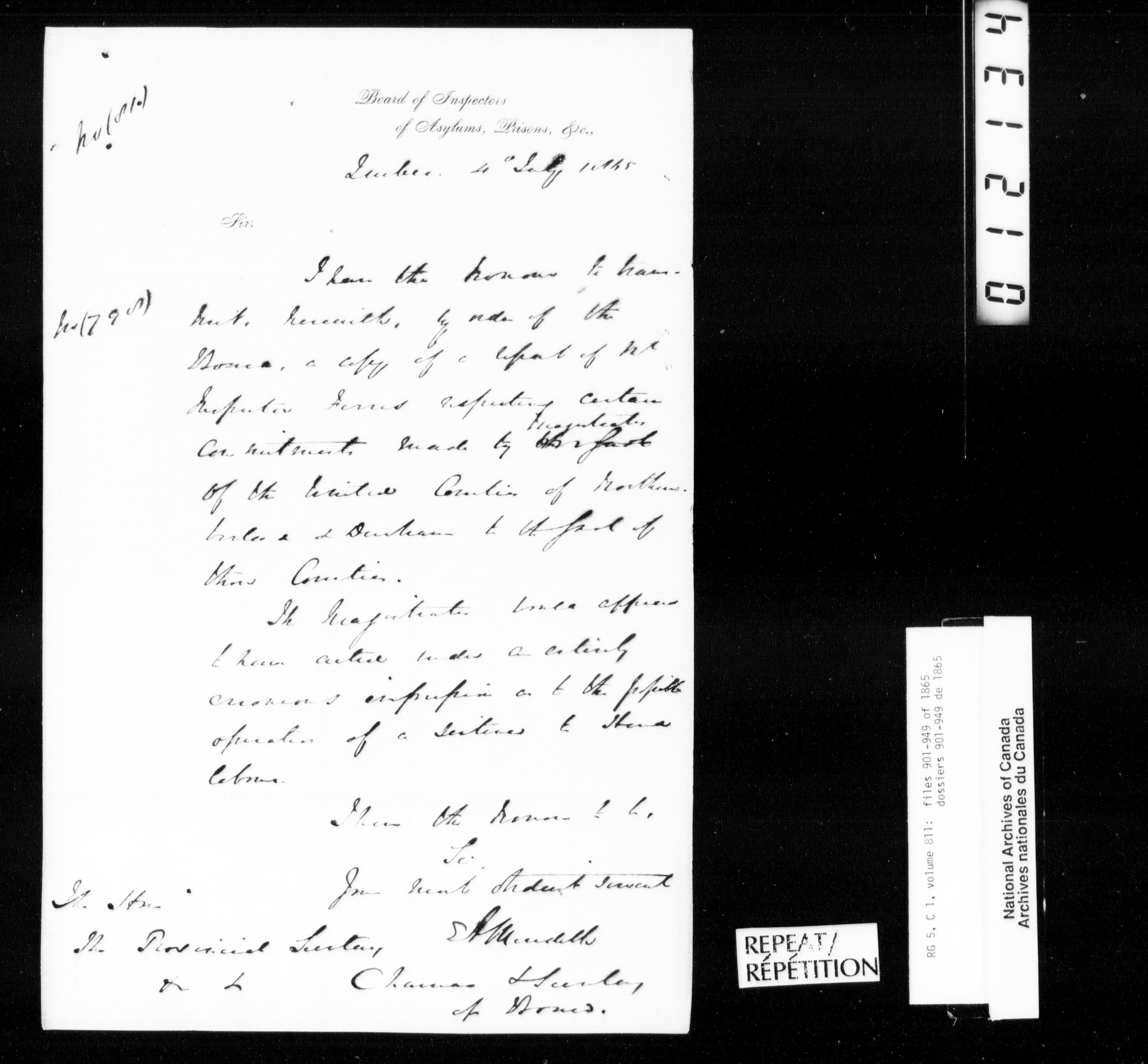 Canada West : Provincial Secretary, numbered correspondence files, 1844 to 1867 : H-2504