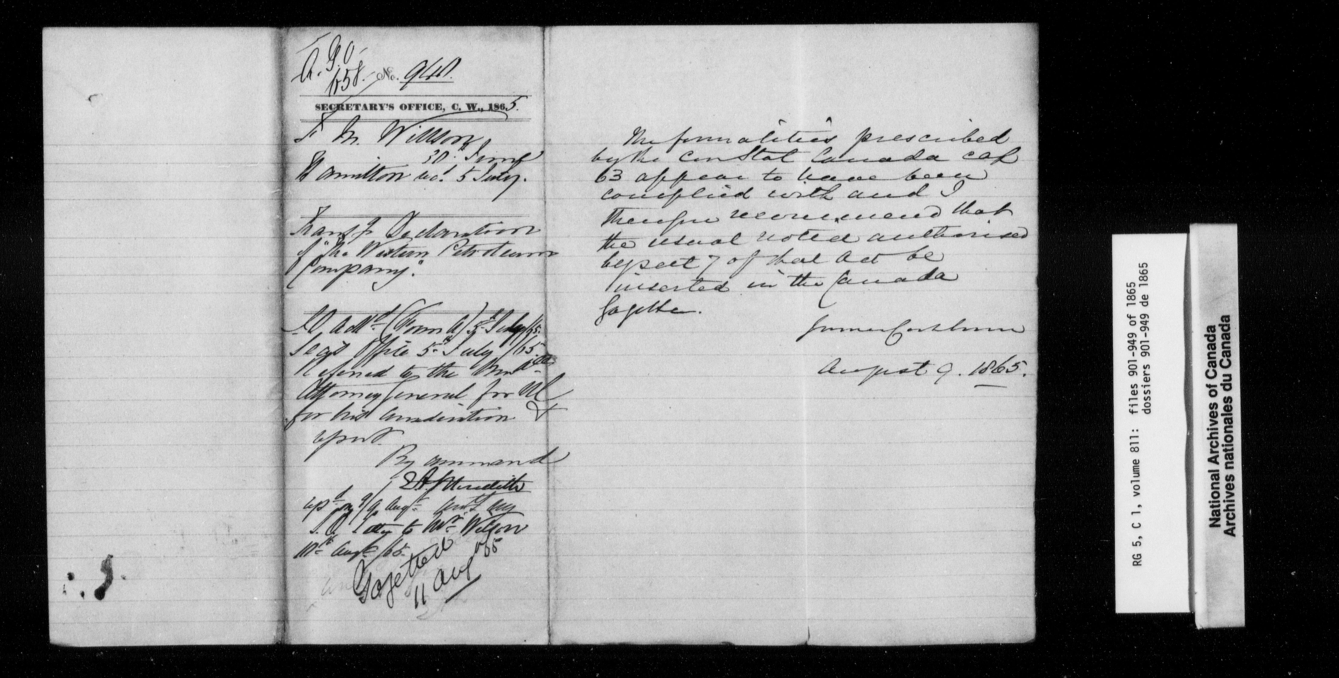 Canada West : Provincial Secretary, numbered correspondence files, 1844 to 1867 : H-2504