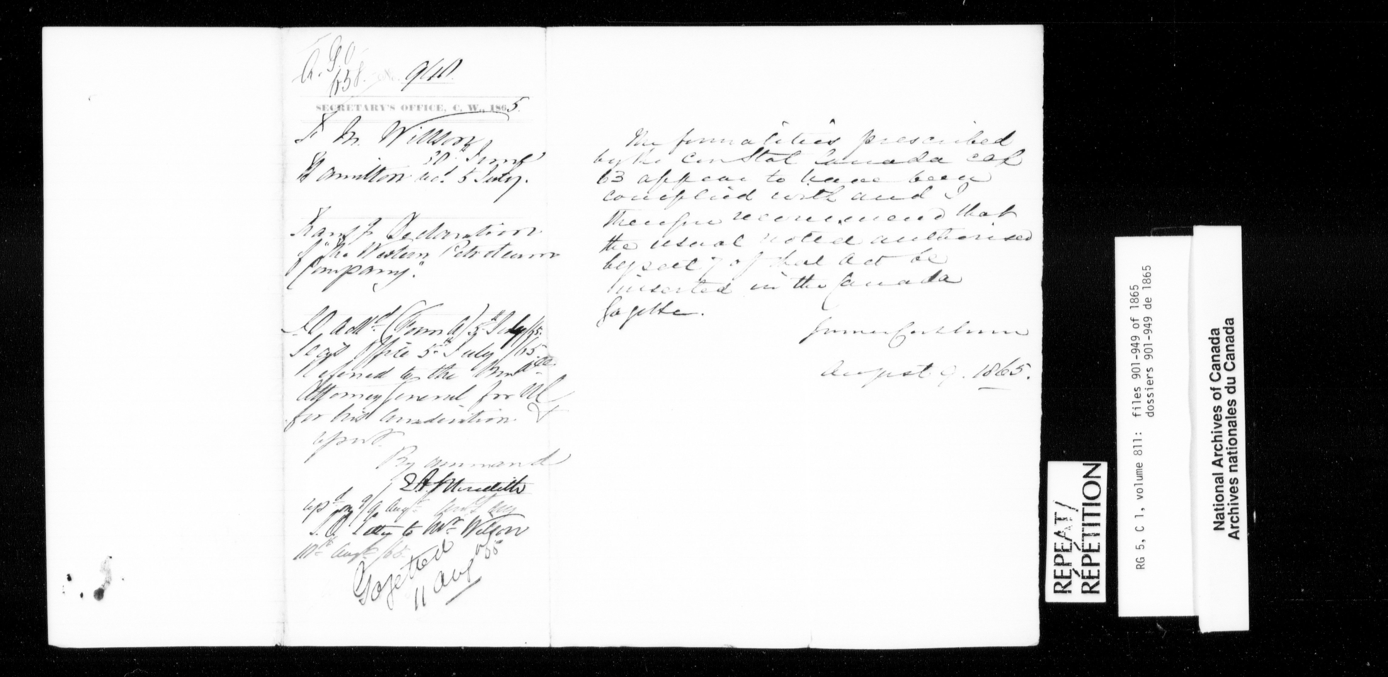 Canada West : Provincial Secretary, numbered correspondence files, 1844 to 1867 - 2504