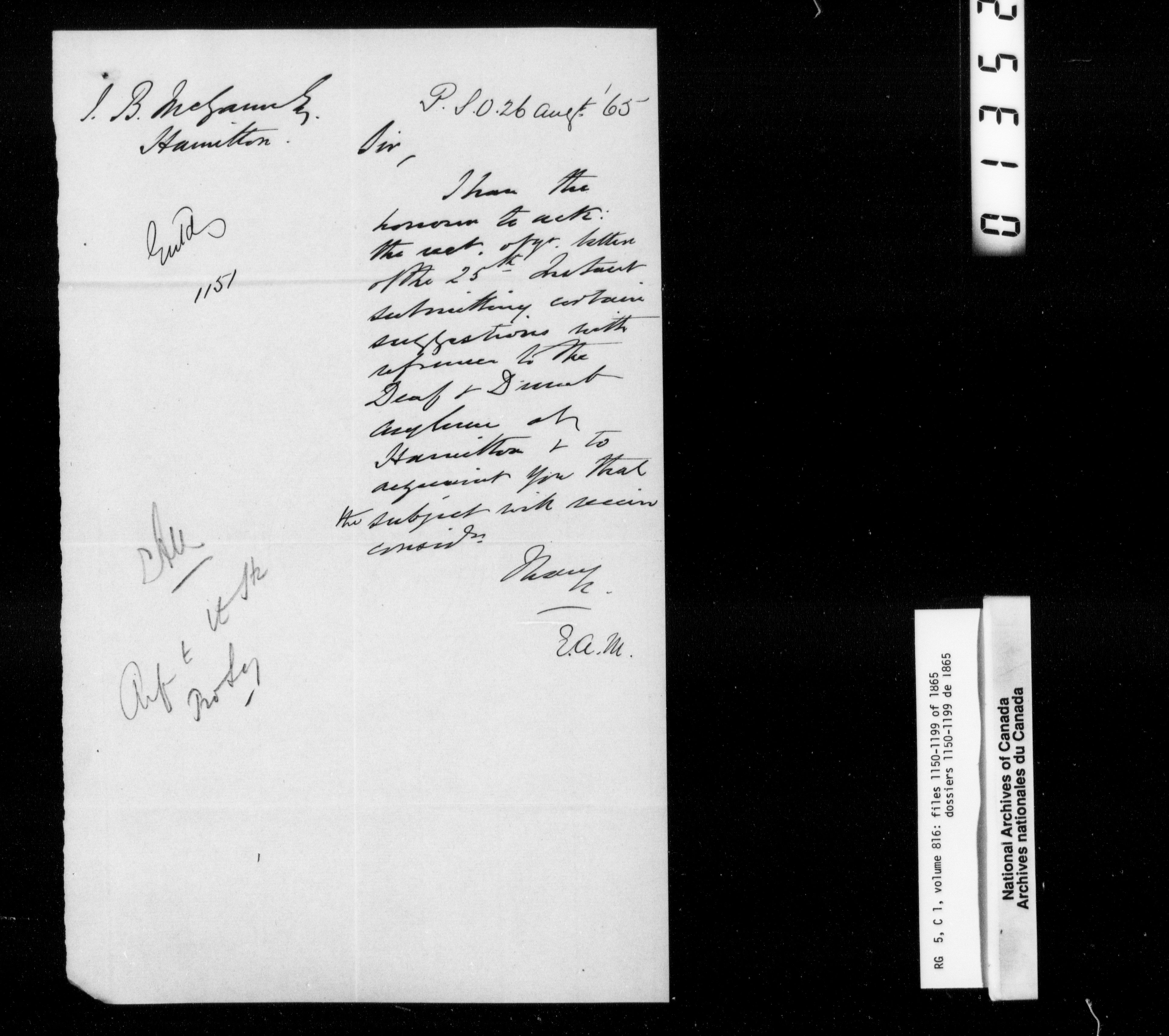 Canada West : Provincial Secretary, numbered correspondence files, 1844 to 1867 - 2505