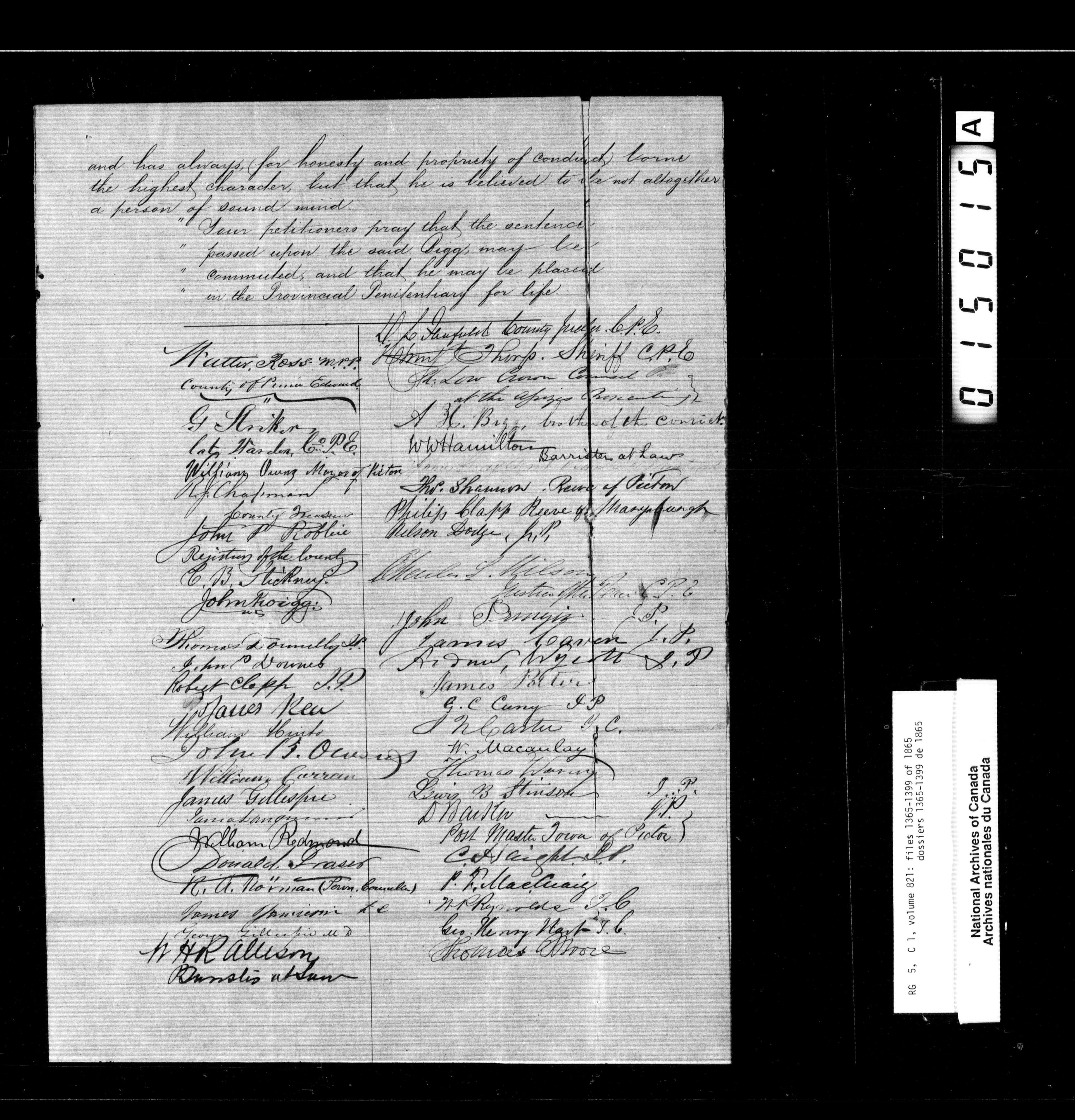 Canada West : Provincial Secretary, numbered correspondence files, 1844 to 1867 : H-2506