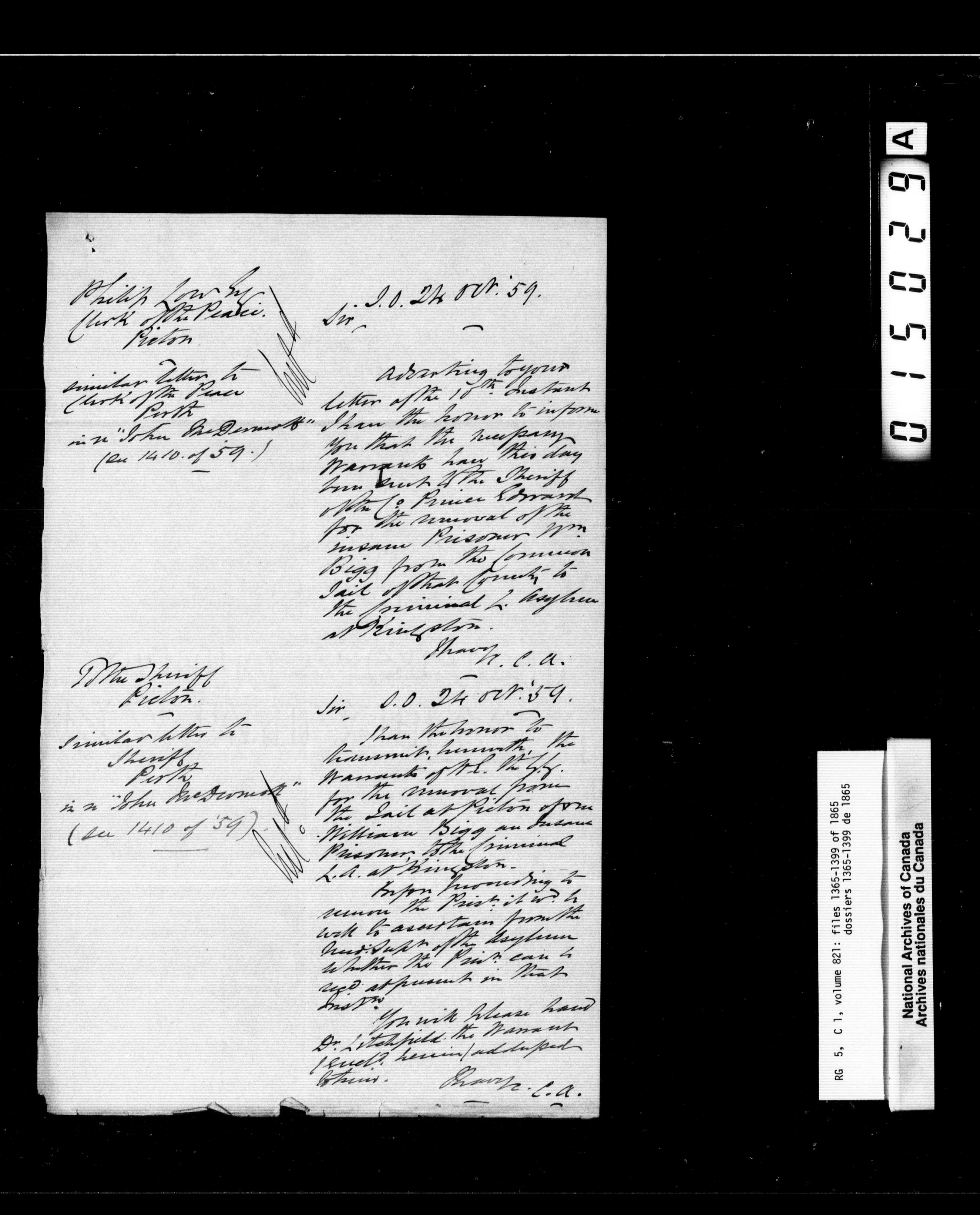 Canada West : Provincial Secretary, numbered correspondence files, 1844 to 1867 : H-2506