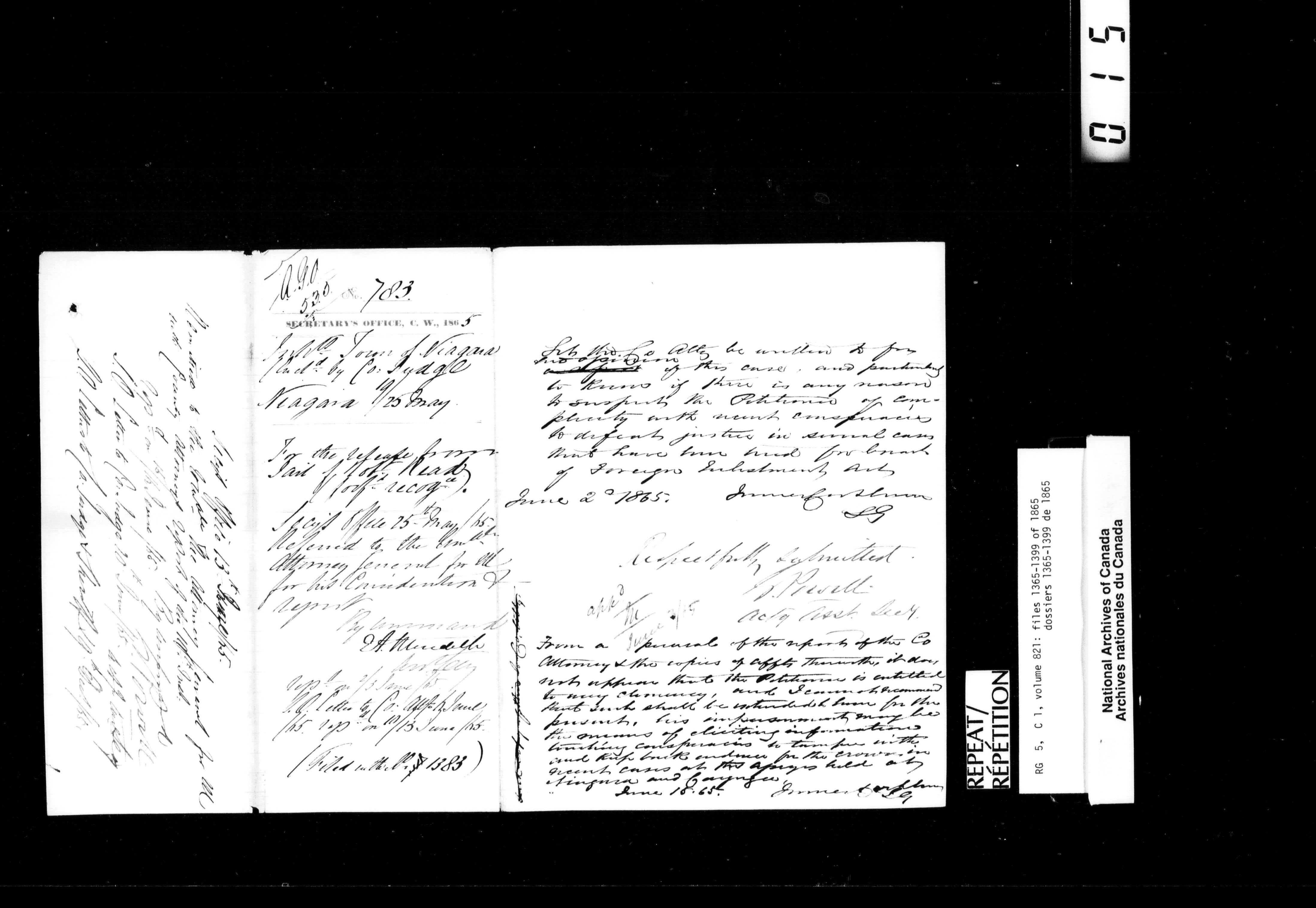 Canada West : Provincial Secretary, numbered correspondence files, 1844 to 1867 : H-2506