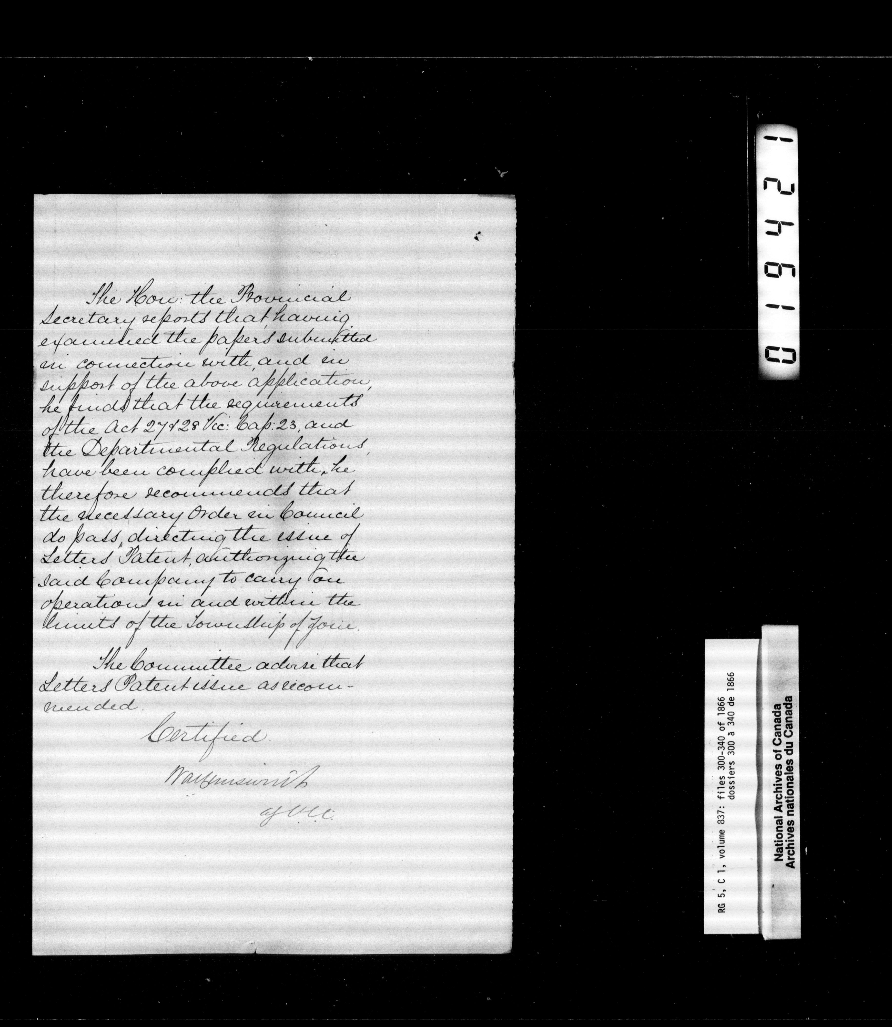 Canada West : Provincial Secretary, numbered correspondence files, 1844 to 1867 : H-2509