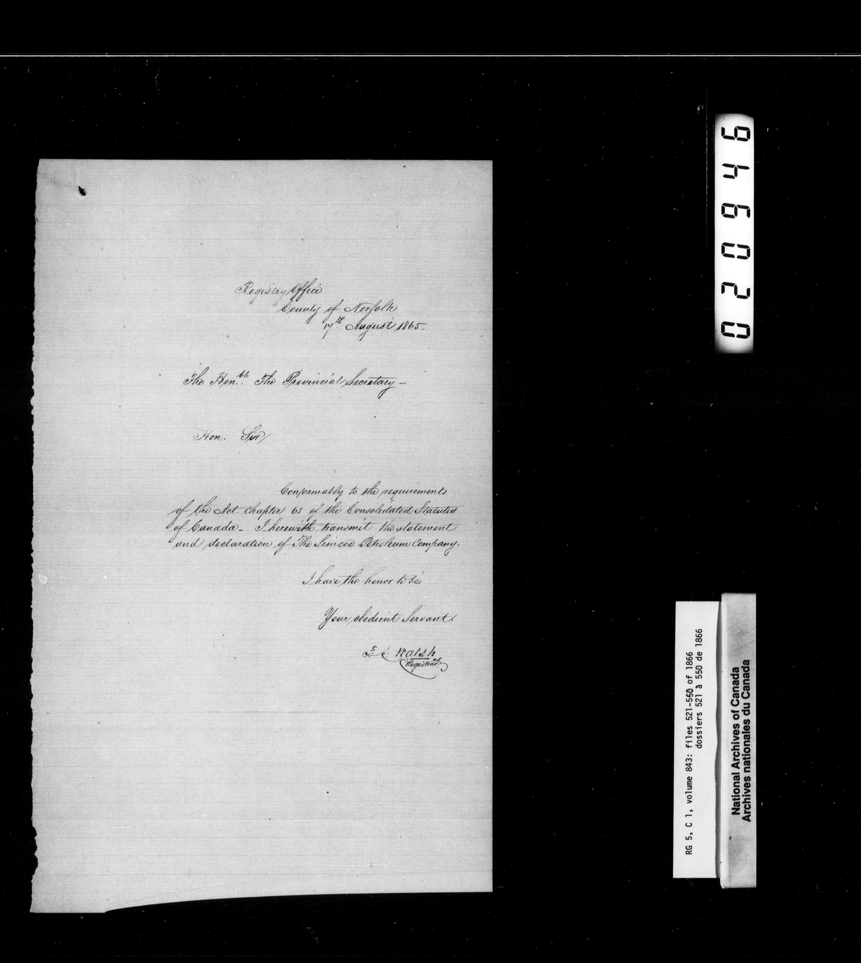 Canada West : Provincial Secretary, numbered correspondence files, 1844 to 1867 - 2510