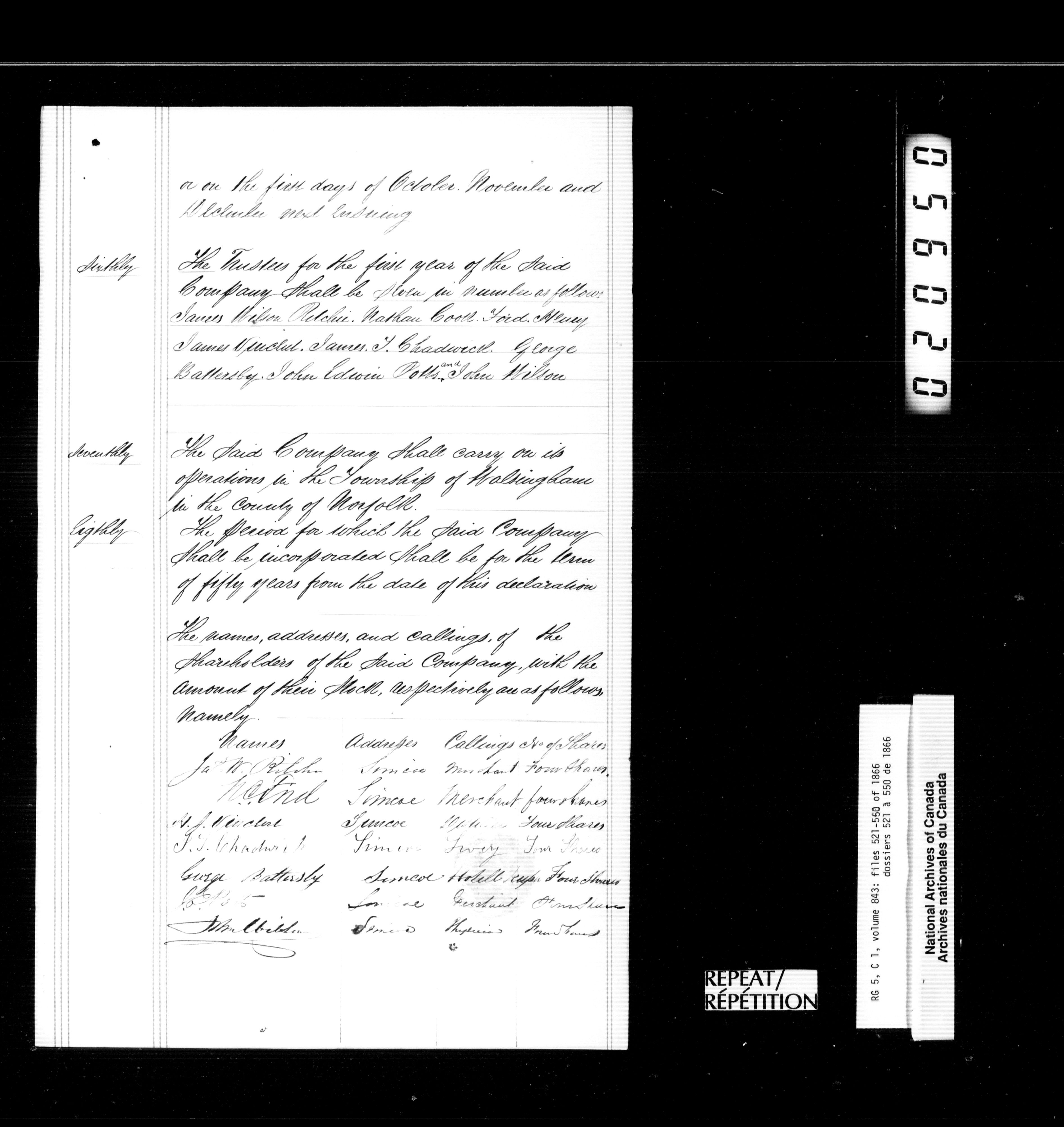 Canada West : Provincial Secretary, numbered correspondence files, 1844 to 1867 - 2510
