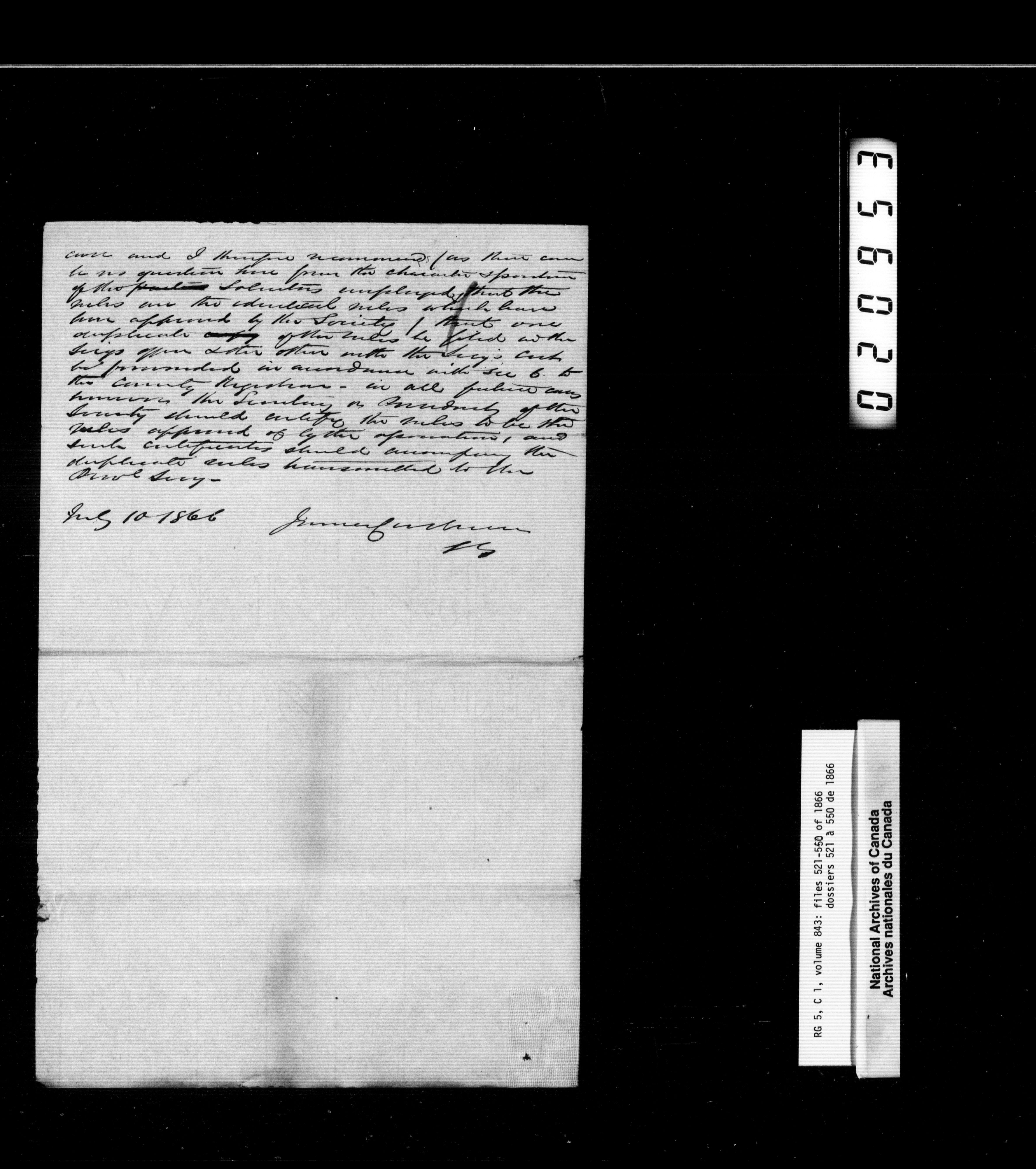 Canada West : Provincial Secretary, numbered correspondence files, 1844 to 1867 - 2510