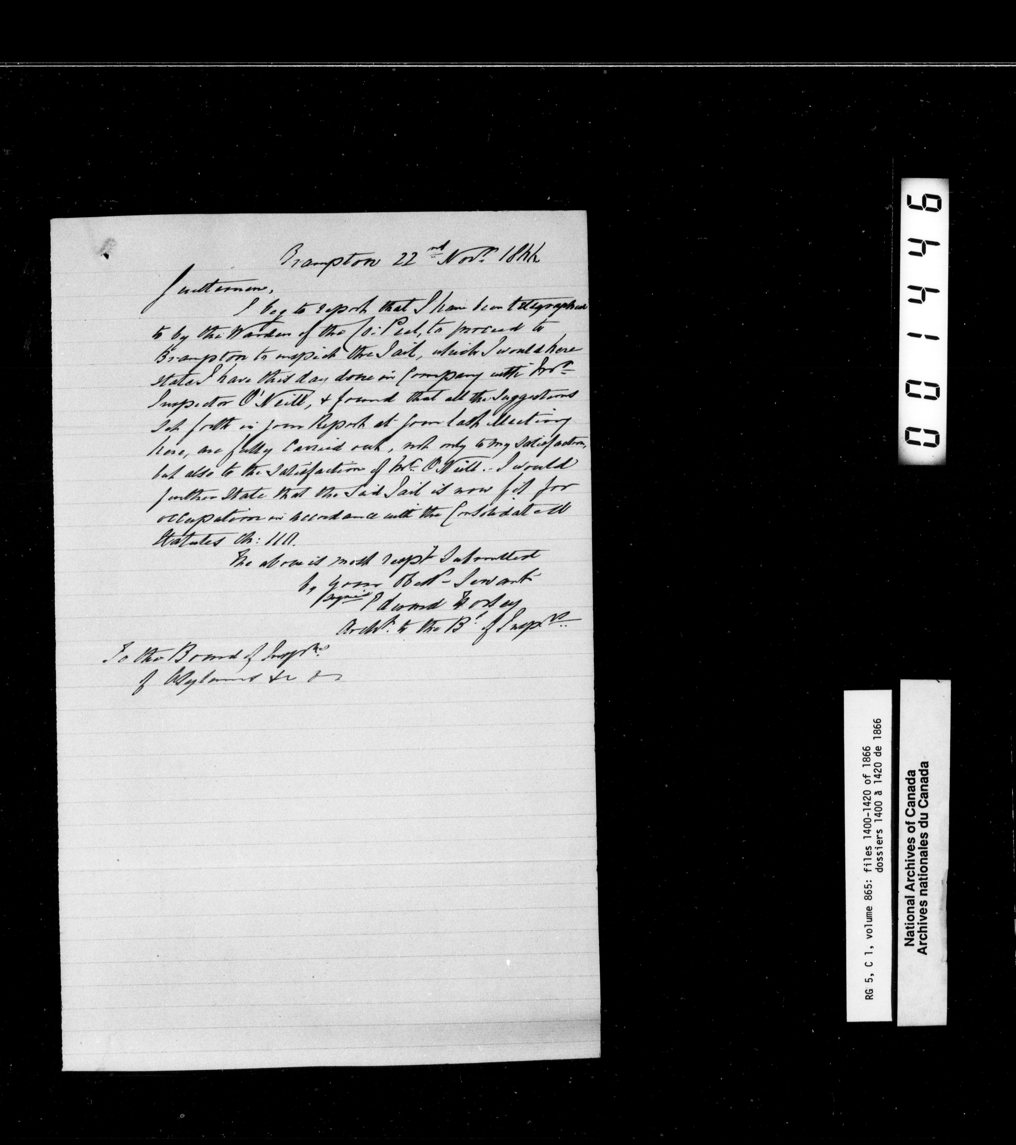 Canada West : Provincial Secretary, numbered correspondence files, 1844 to 1867 - 2514