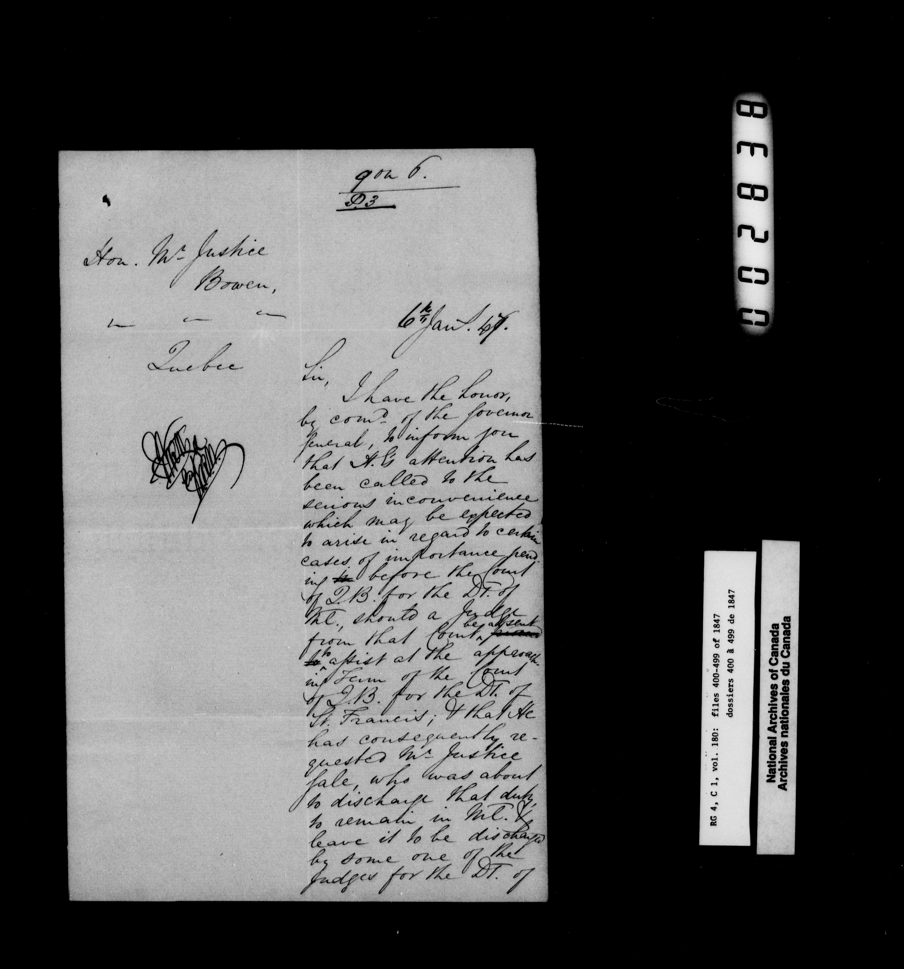 Canada East : Provincial Secretary numbered correspondence files, 1839-1867 - 2578