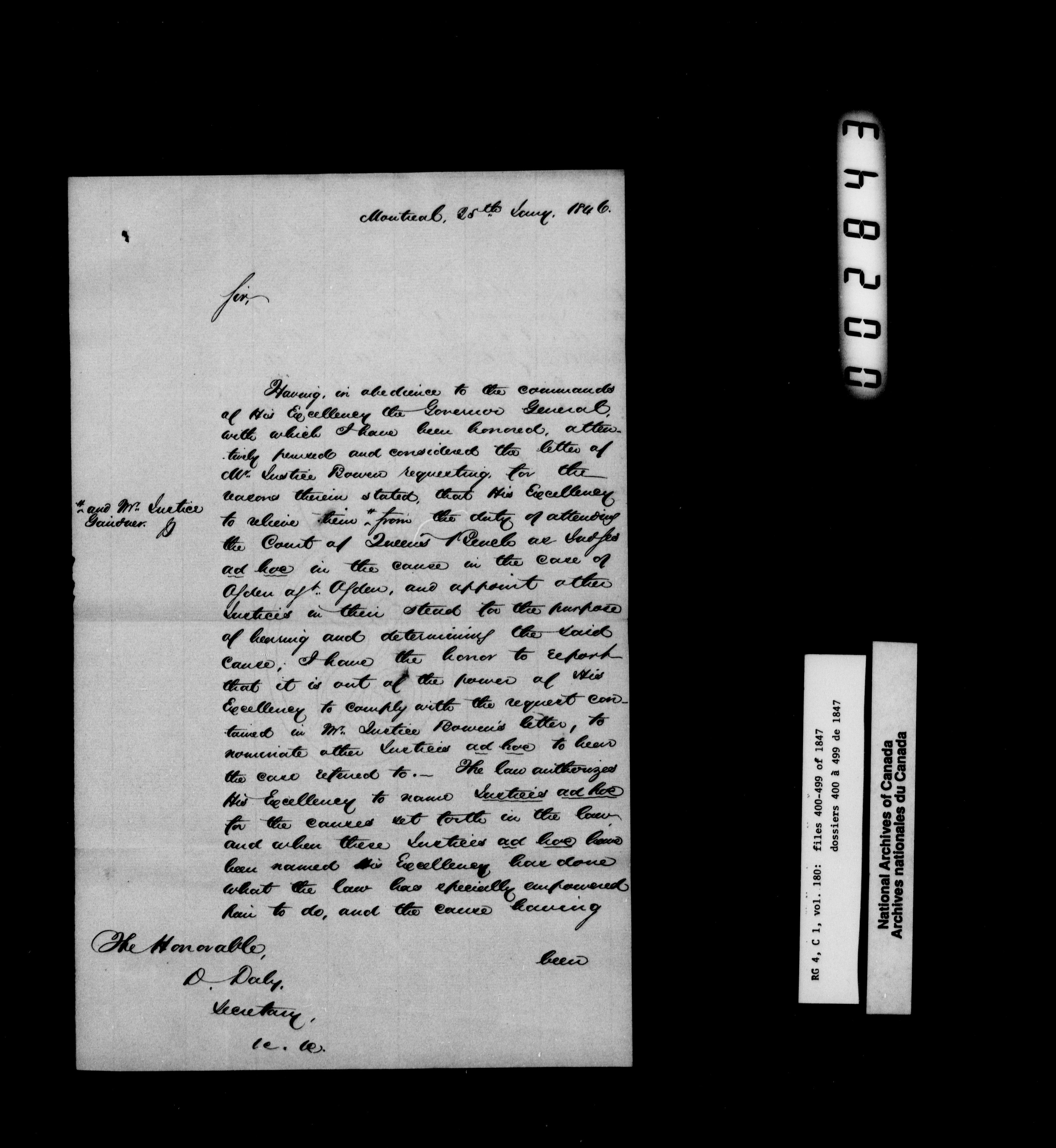 Canada East : Provincial Secretary numbered correspondence files, 1839-1867 - 2578