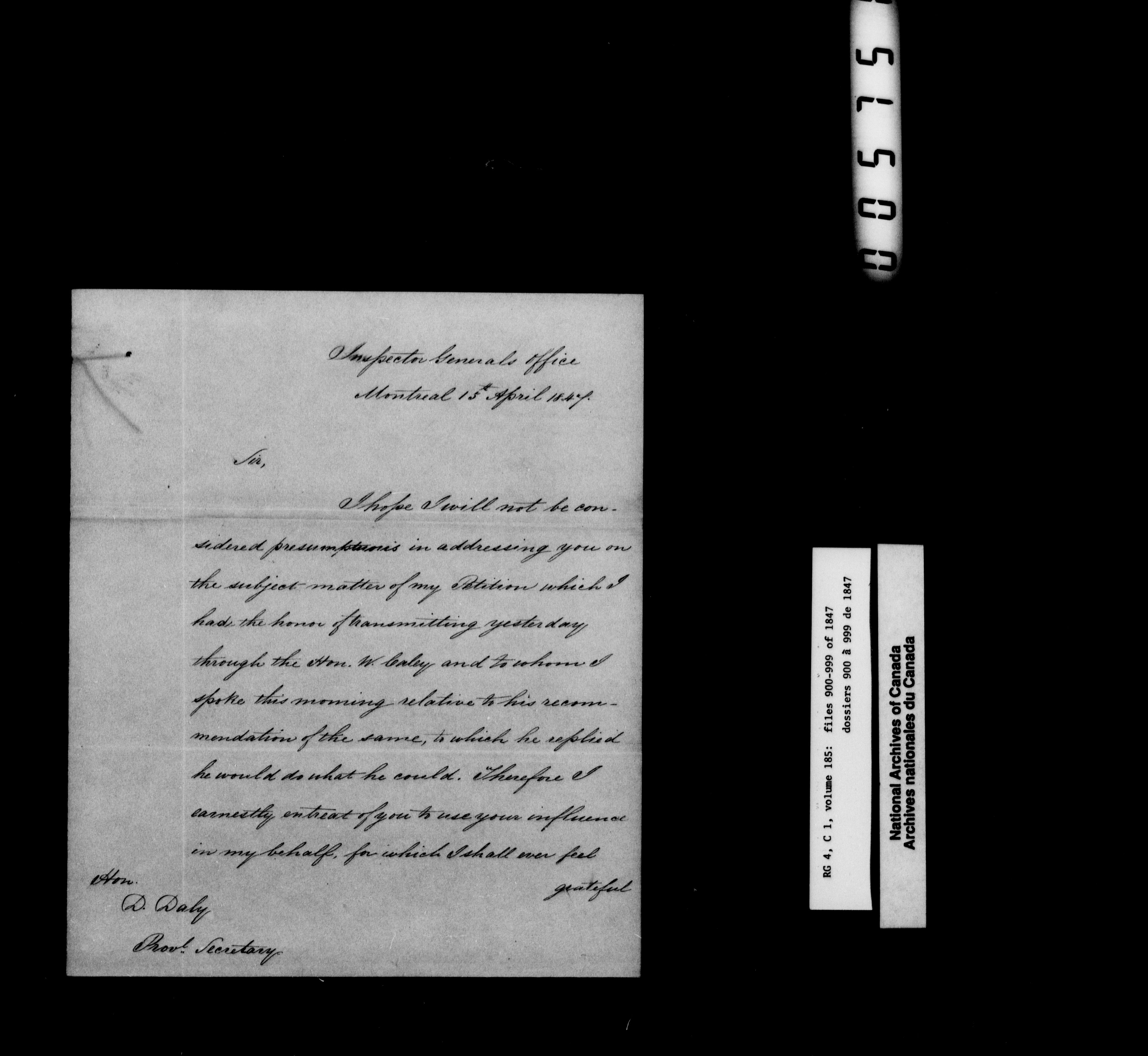 Canada East : Provincial Secretary numbered correspondence files, 1839-1867 : H-2579