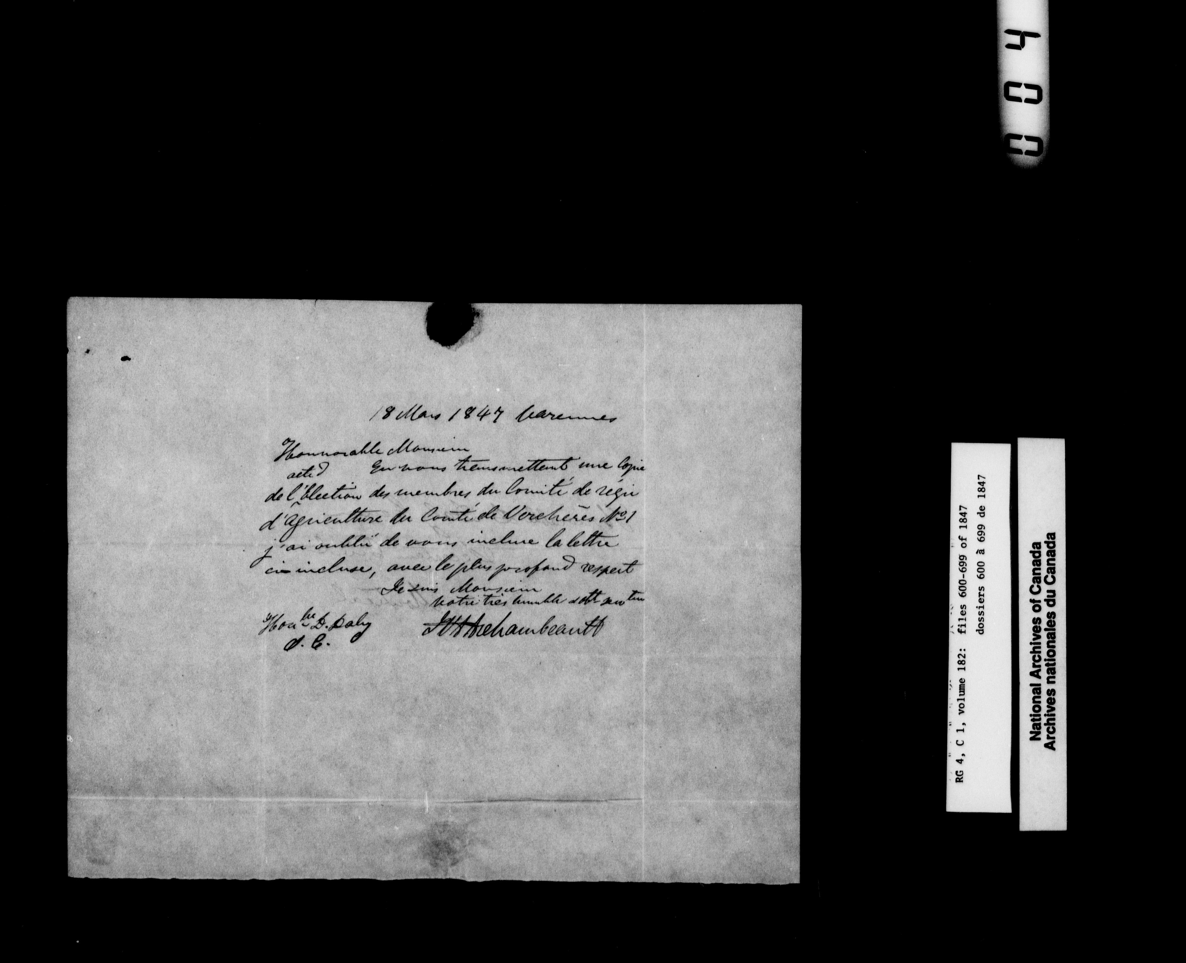 Canada East : Provincial Secretary numbered correspondence files, 1839-1867 - 2579
