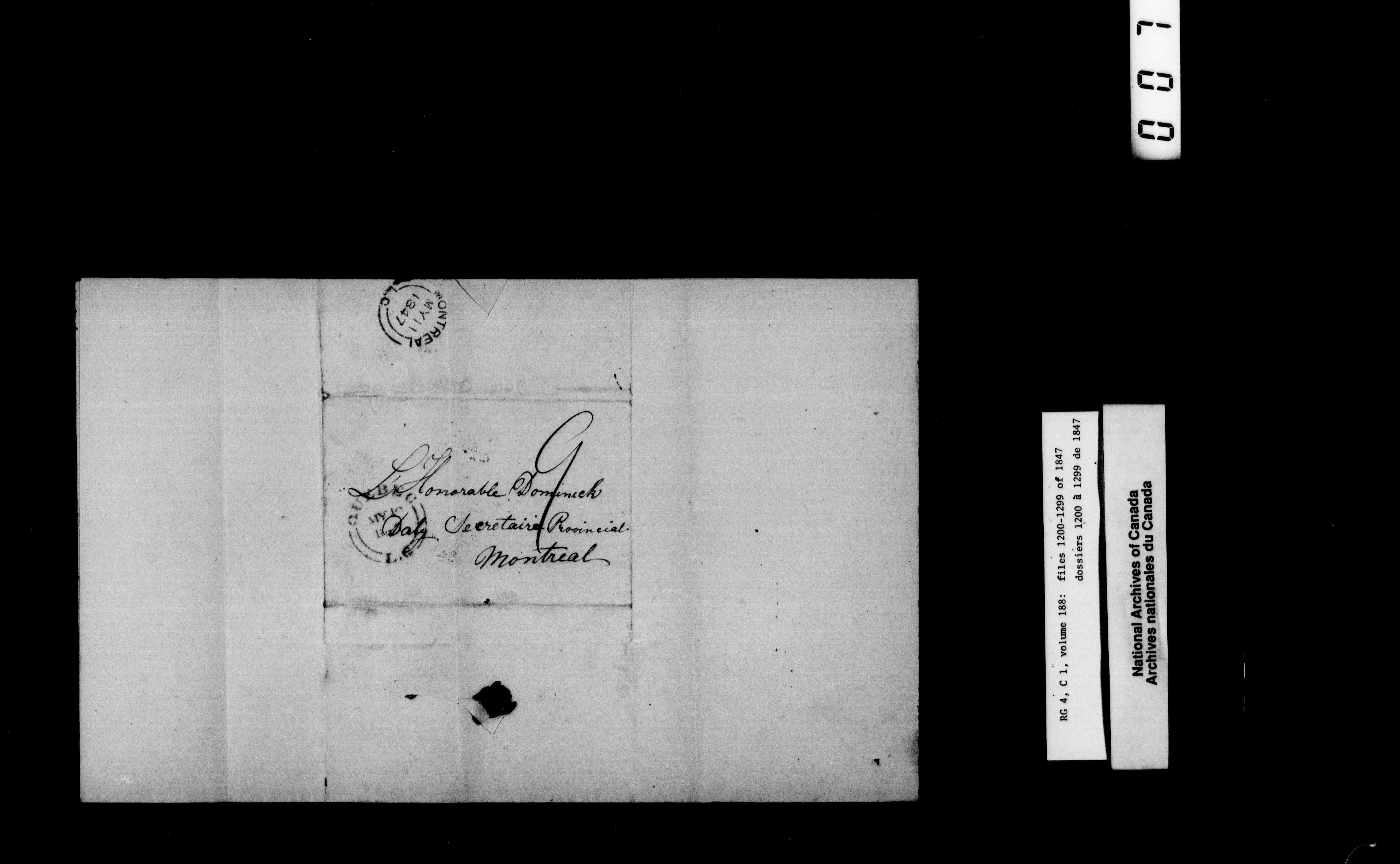 Canada East : Provincial Secretary numbered correspondence files, 1839-1867 - 2580