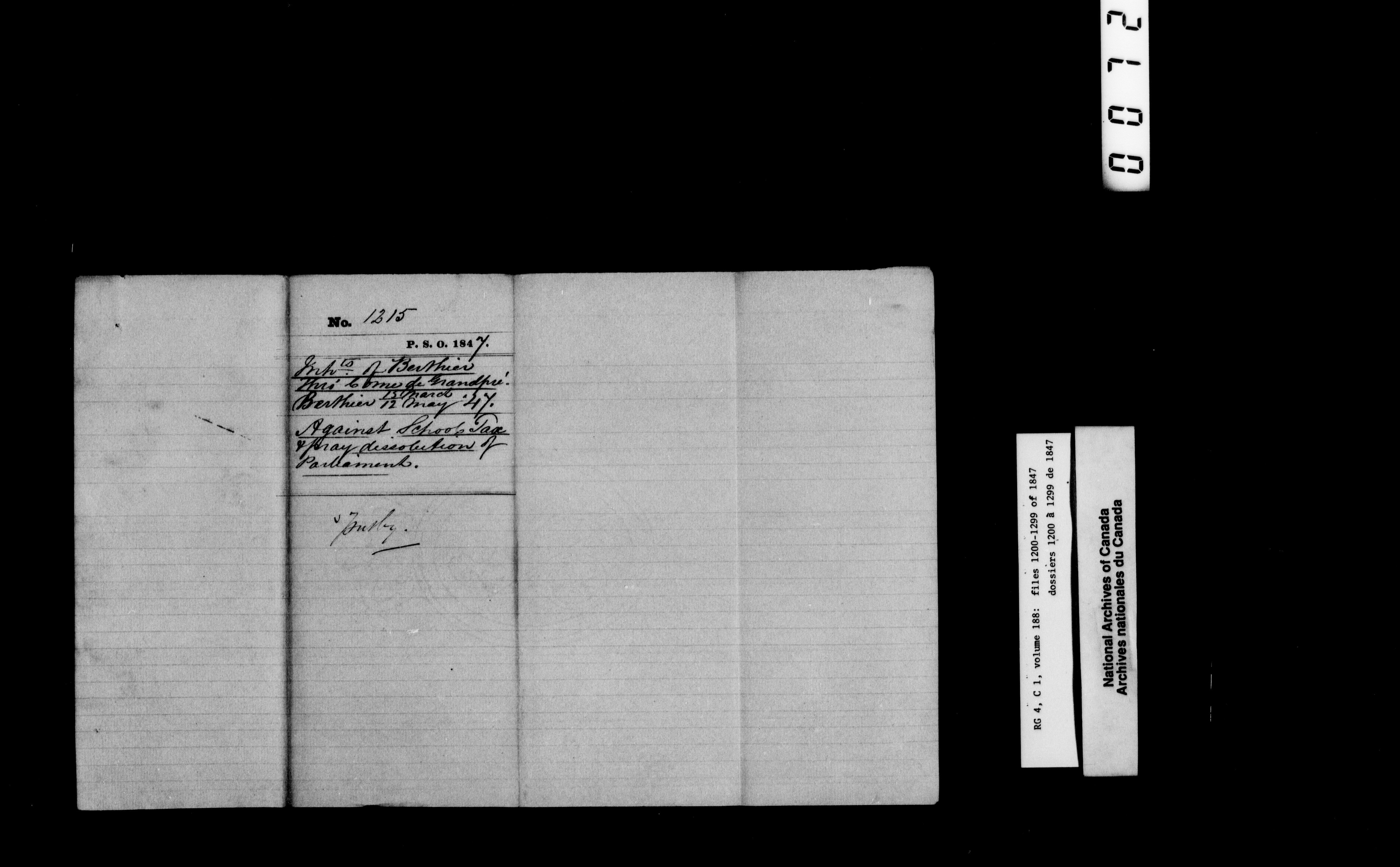 Canada East : Provincial Secretary numbered correspondence files, 1839-1867 - 2580