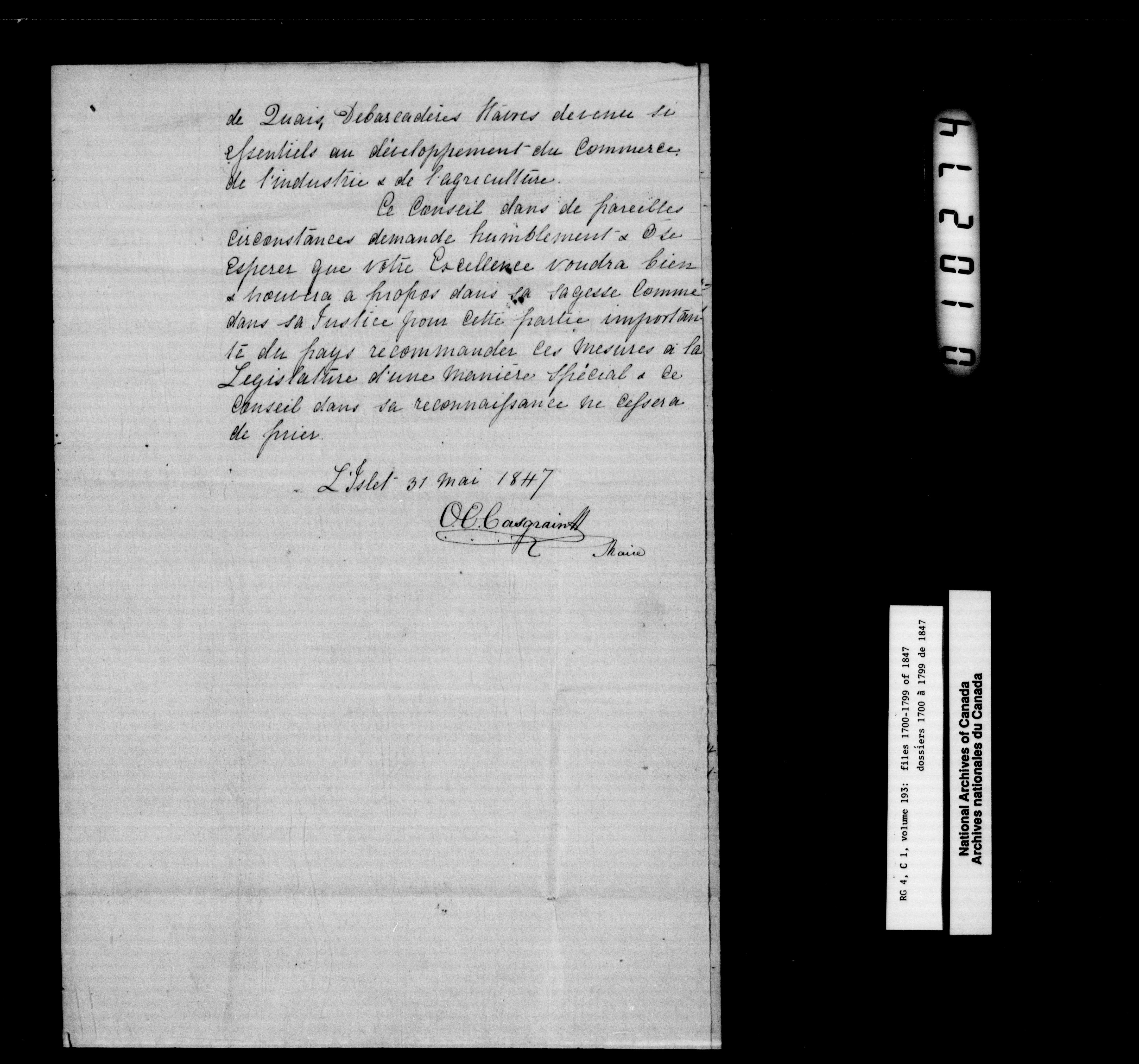 Canada East : Provincial Secretary numbered correspondence files, 1839-1867 - 2582