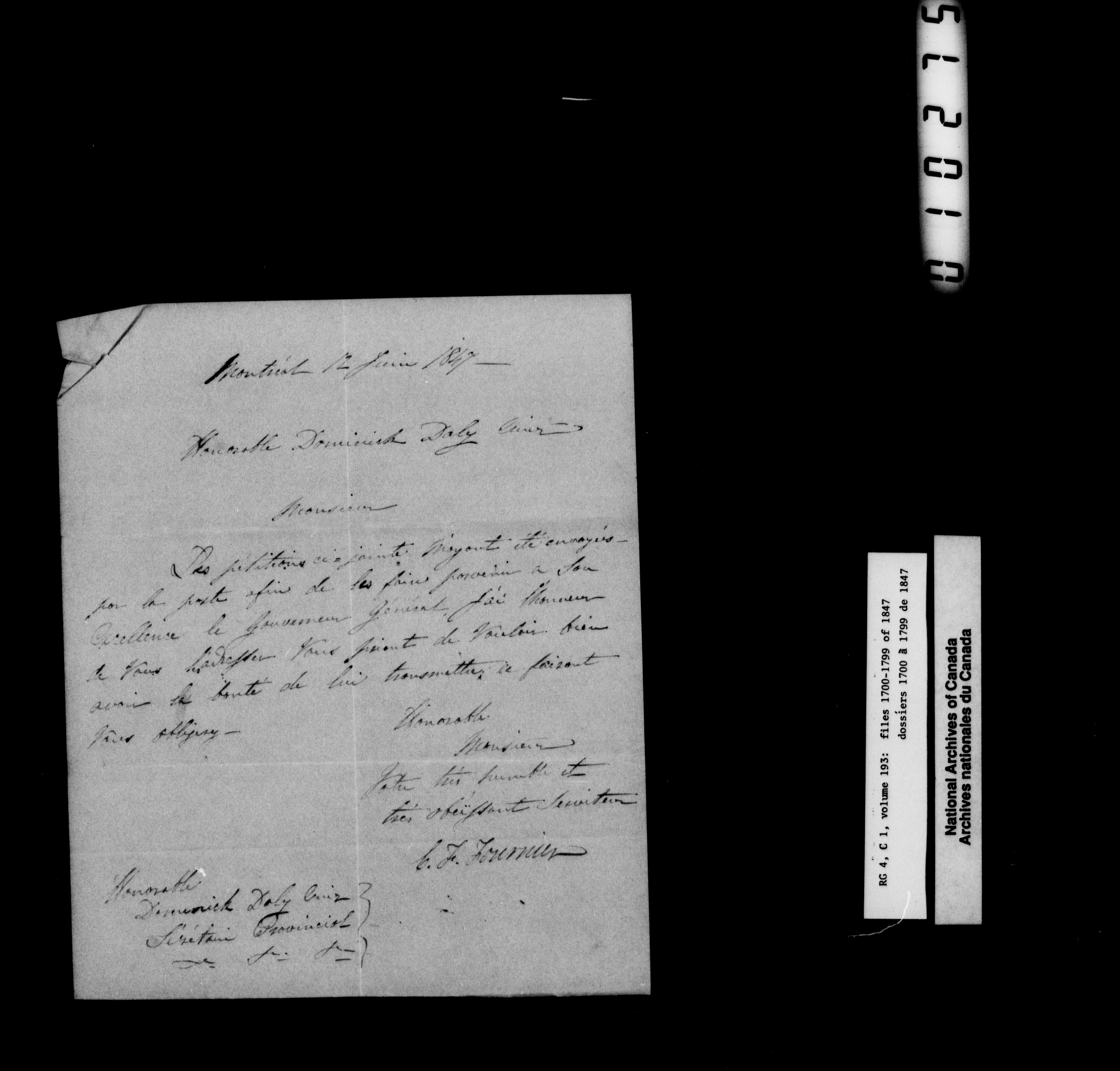 Canada East : Provincial Secretary numbered correspondence files, 1839-1867 - 2582