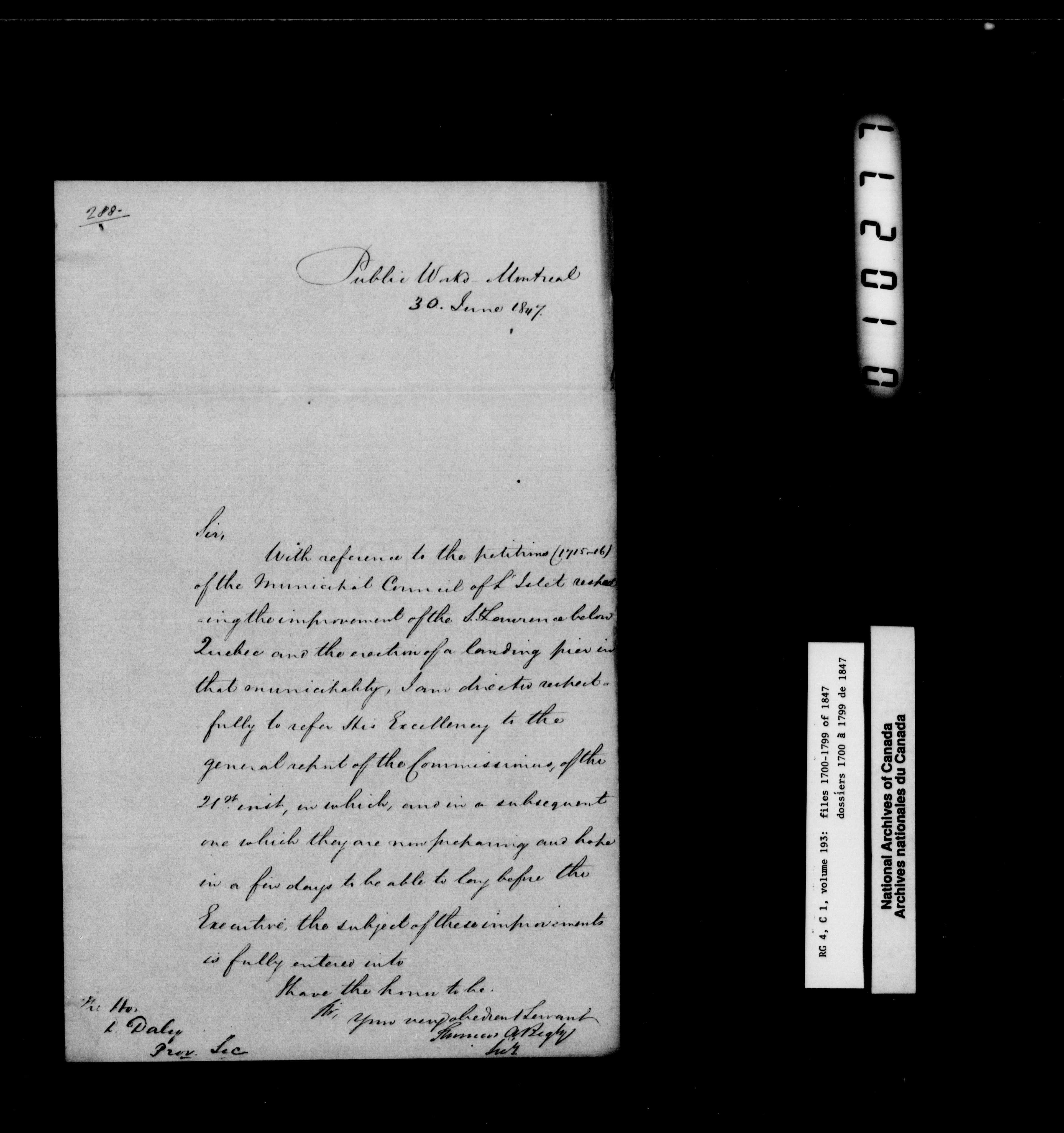 Canada East : Provincial Secretary numbered correspondence files, 1839-1867 - 2582