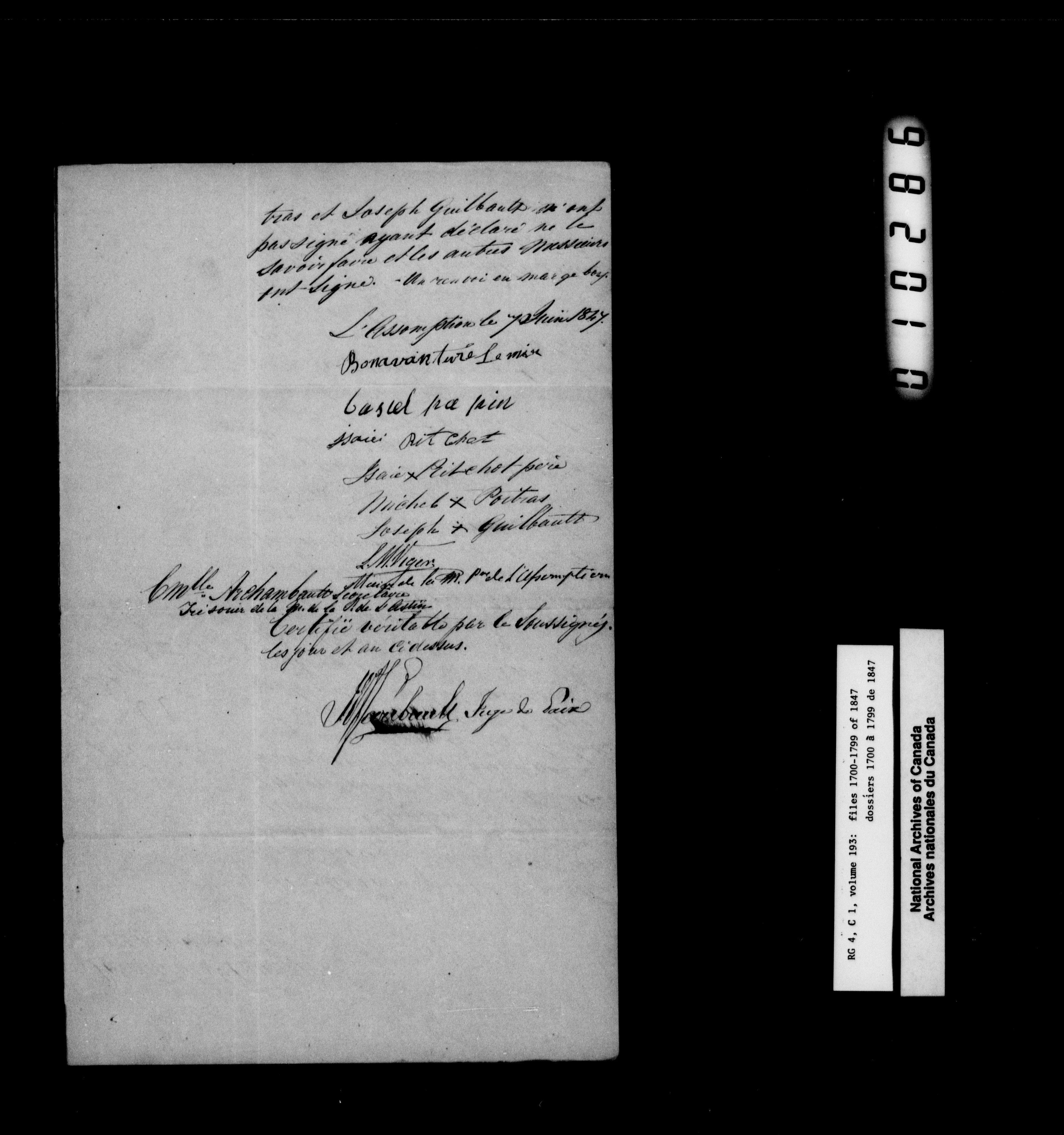 Canada East : Provincial Secretary numbered correspondence files, 1839-1867 - 2582