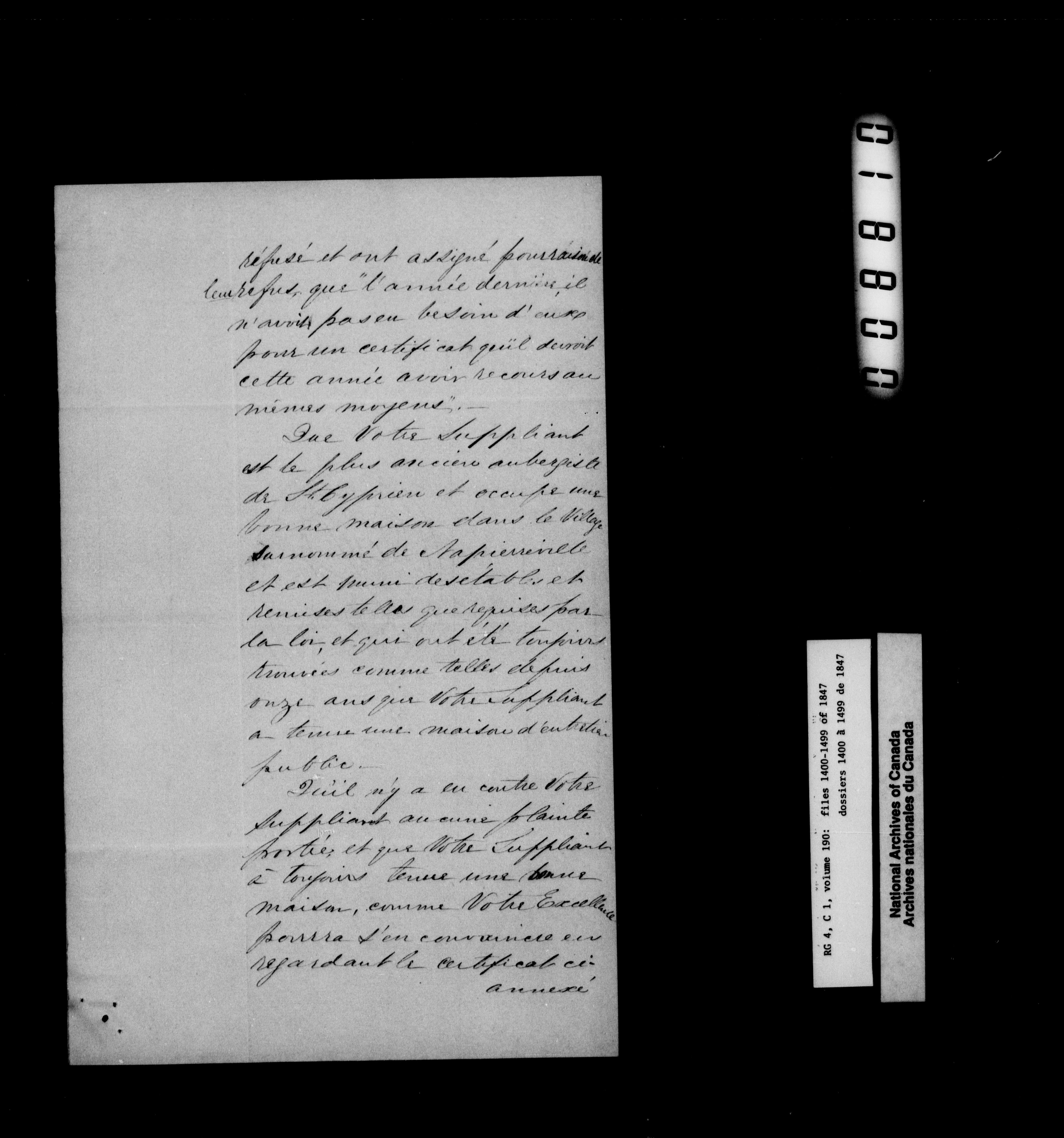 Canada East : Provincial Secretary numbered correspondence files, 1839-1867 - 2582