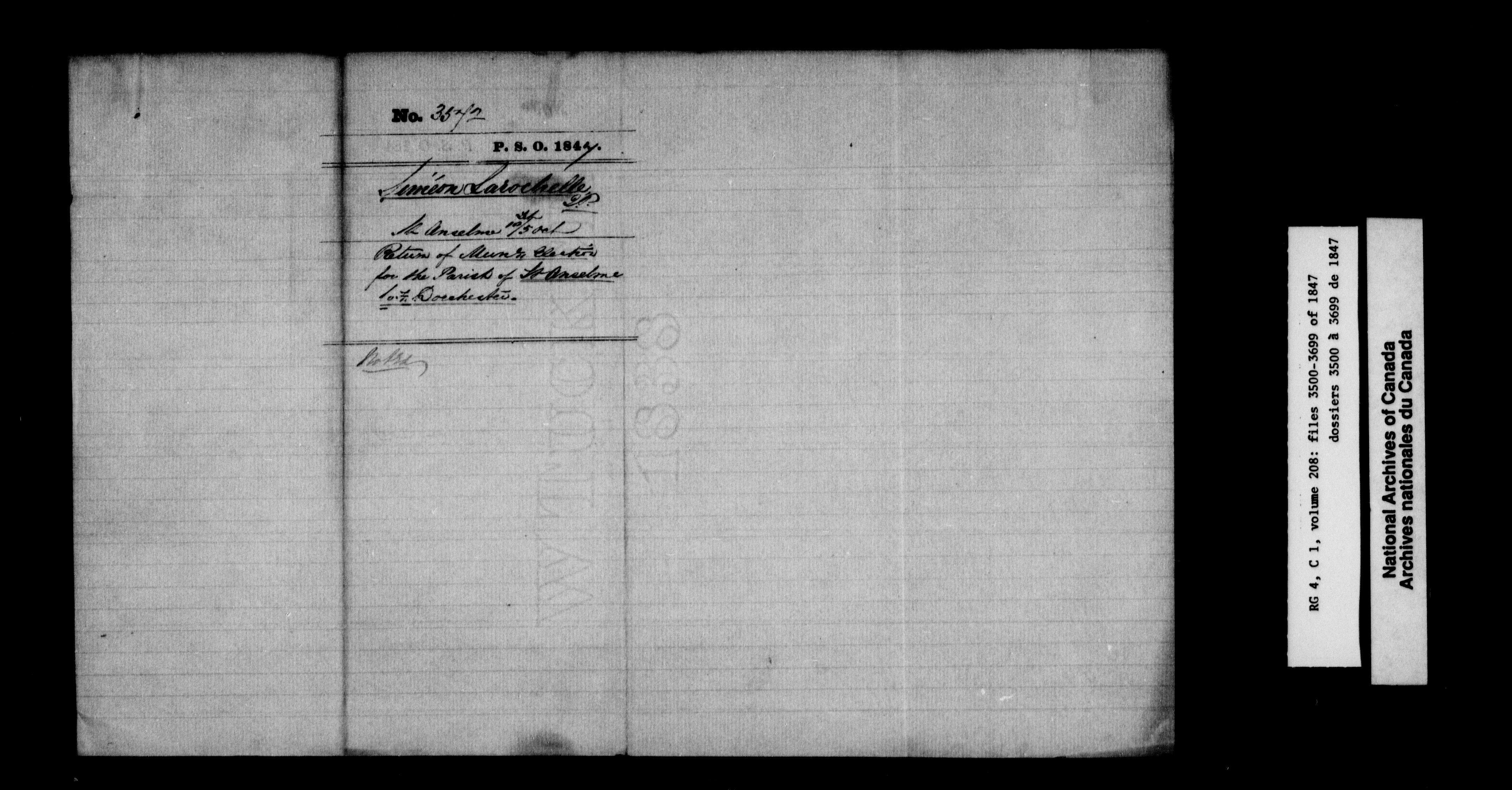 Canada East : Provincial Secretary numbered correspondence files, 1839-1867 - 2589