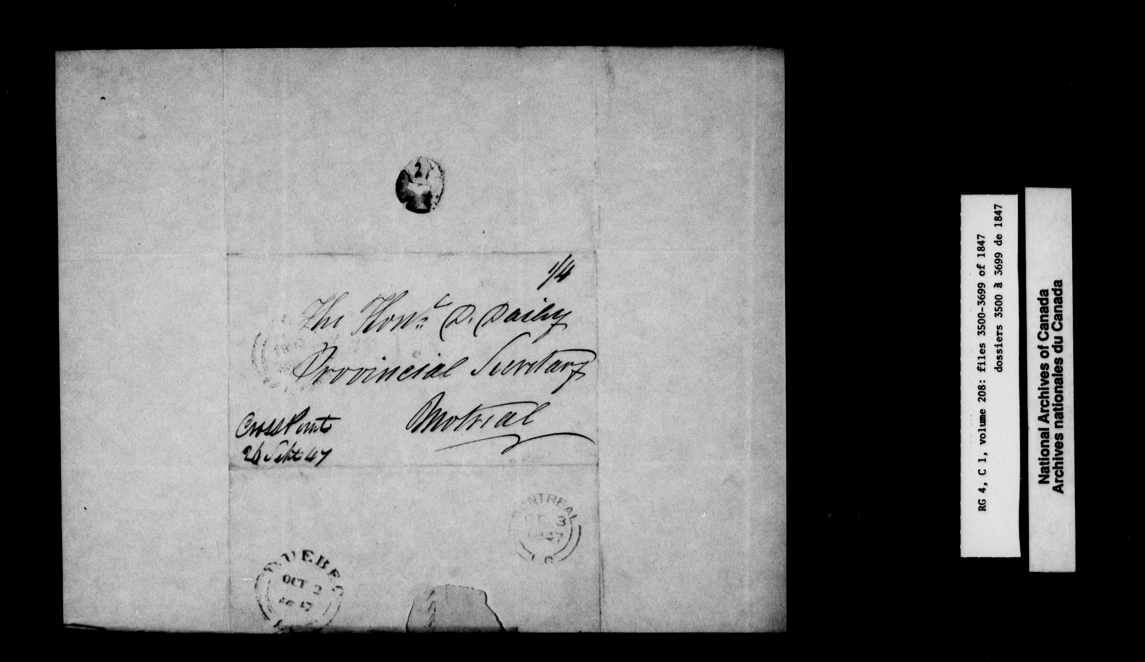 Canada East : Provincial Secretary numbered correspondence files, 1839-1867 - 2589