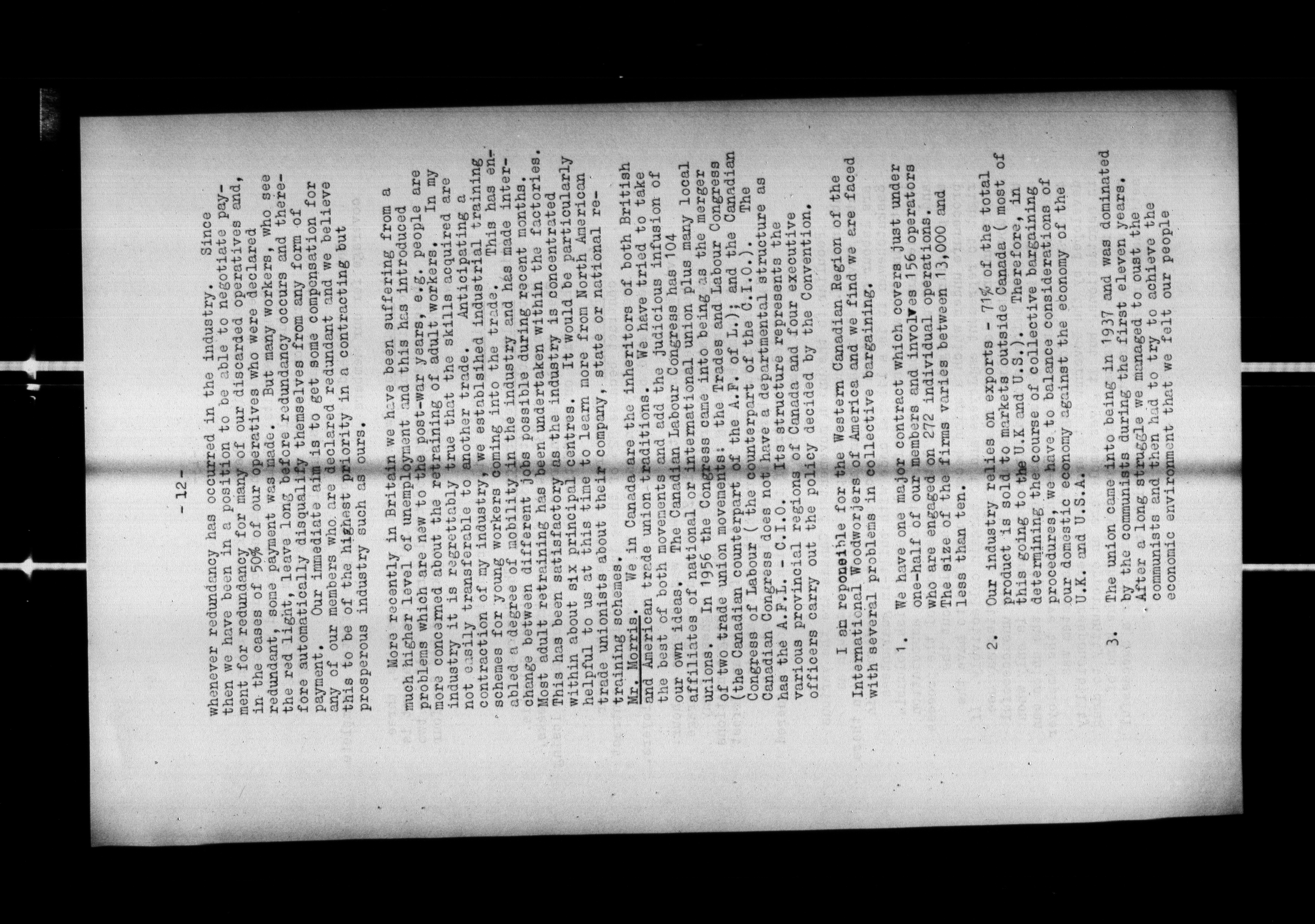 Canadian Labour Congress : Joe Morris, Executive Vice President files : H-259