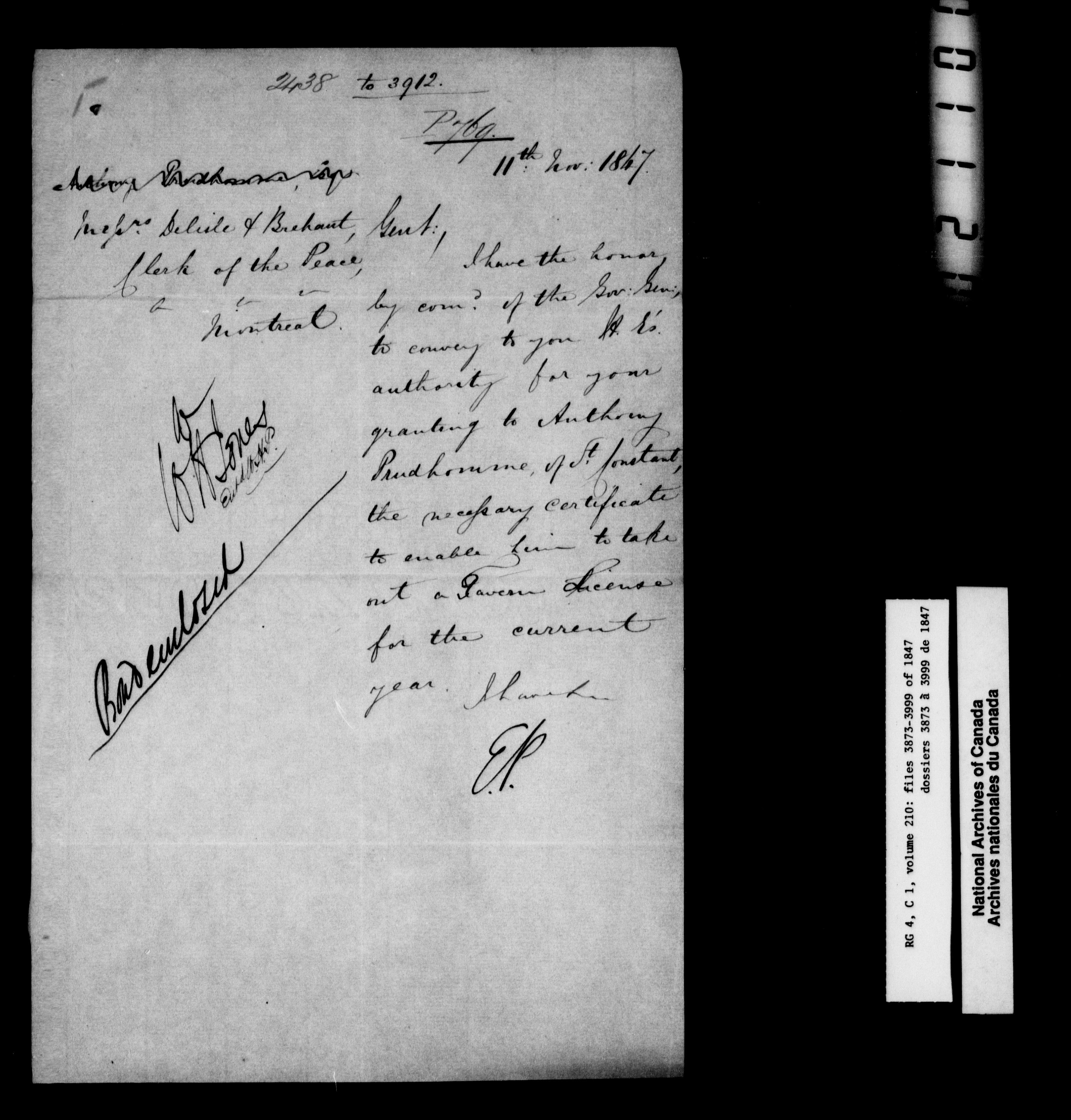 Canada East : Provincial Secretary numbered correspondence files, 1839-1867 - 2590