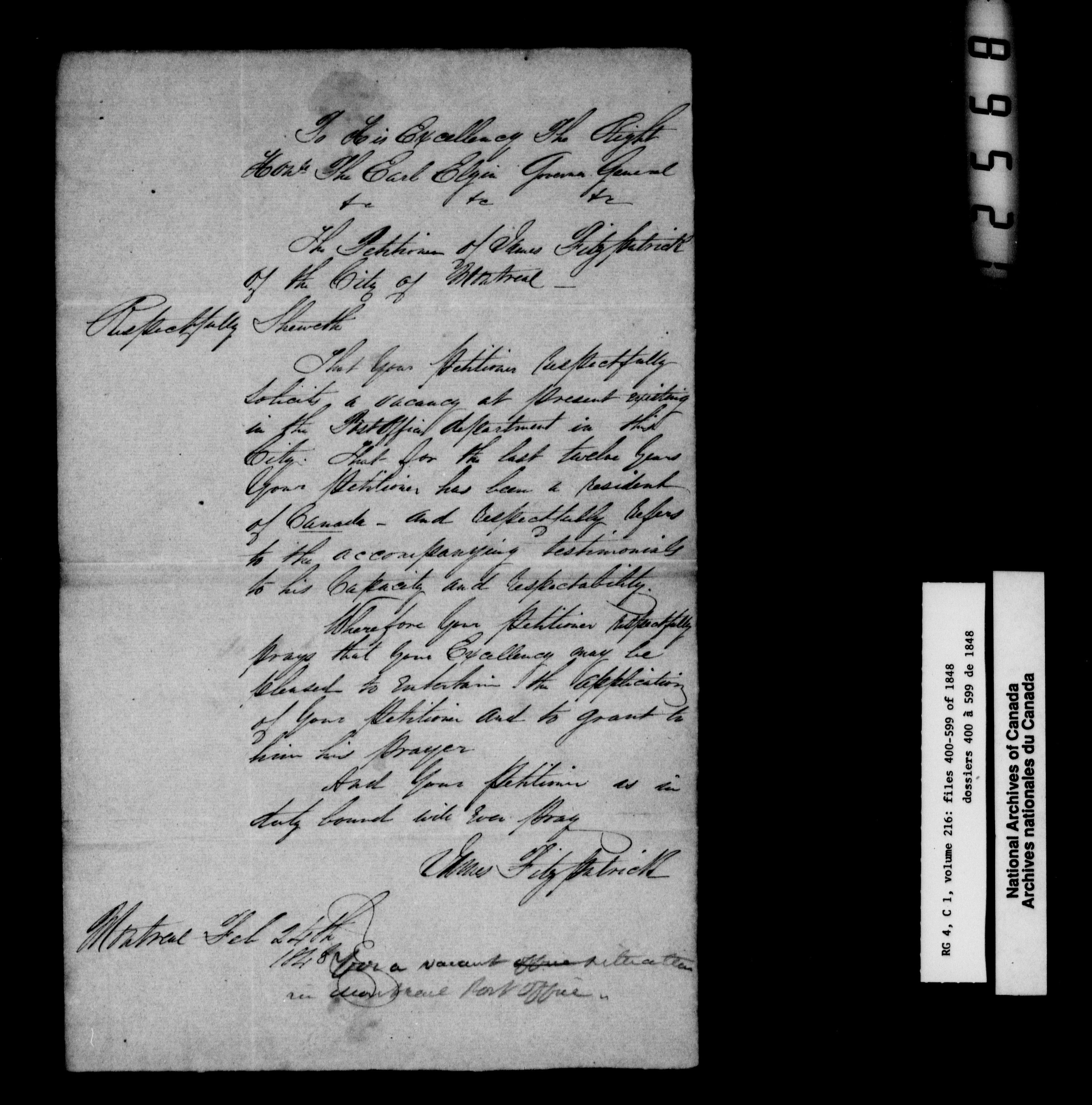 Canada East : Provincial Secretary numbered correspondence files, 1839-1867 - 2592