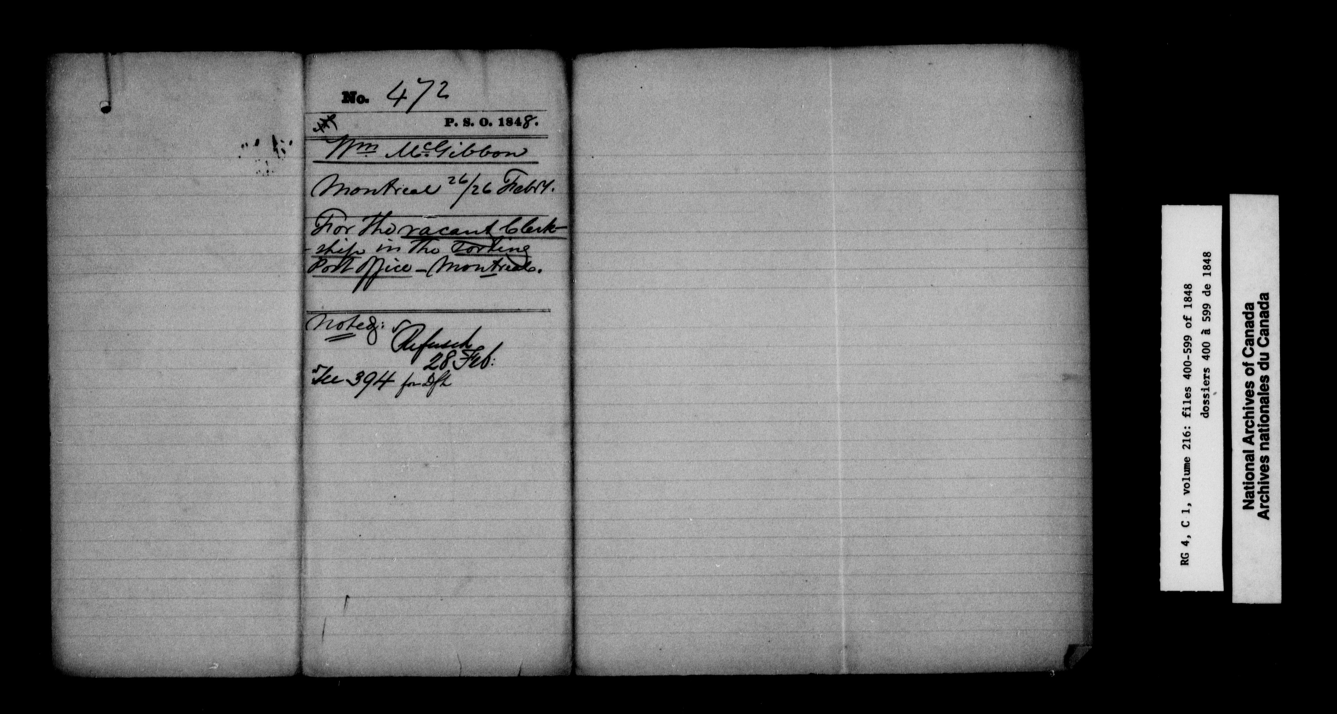 Canada East : Provincial Secretary numbered correspondence files, 1839-1867 - 2592