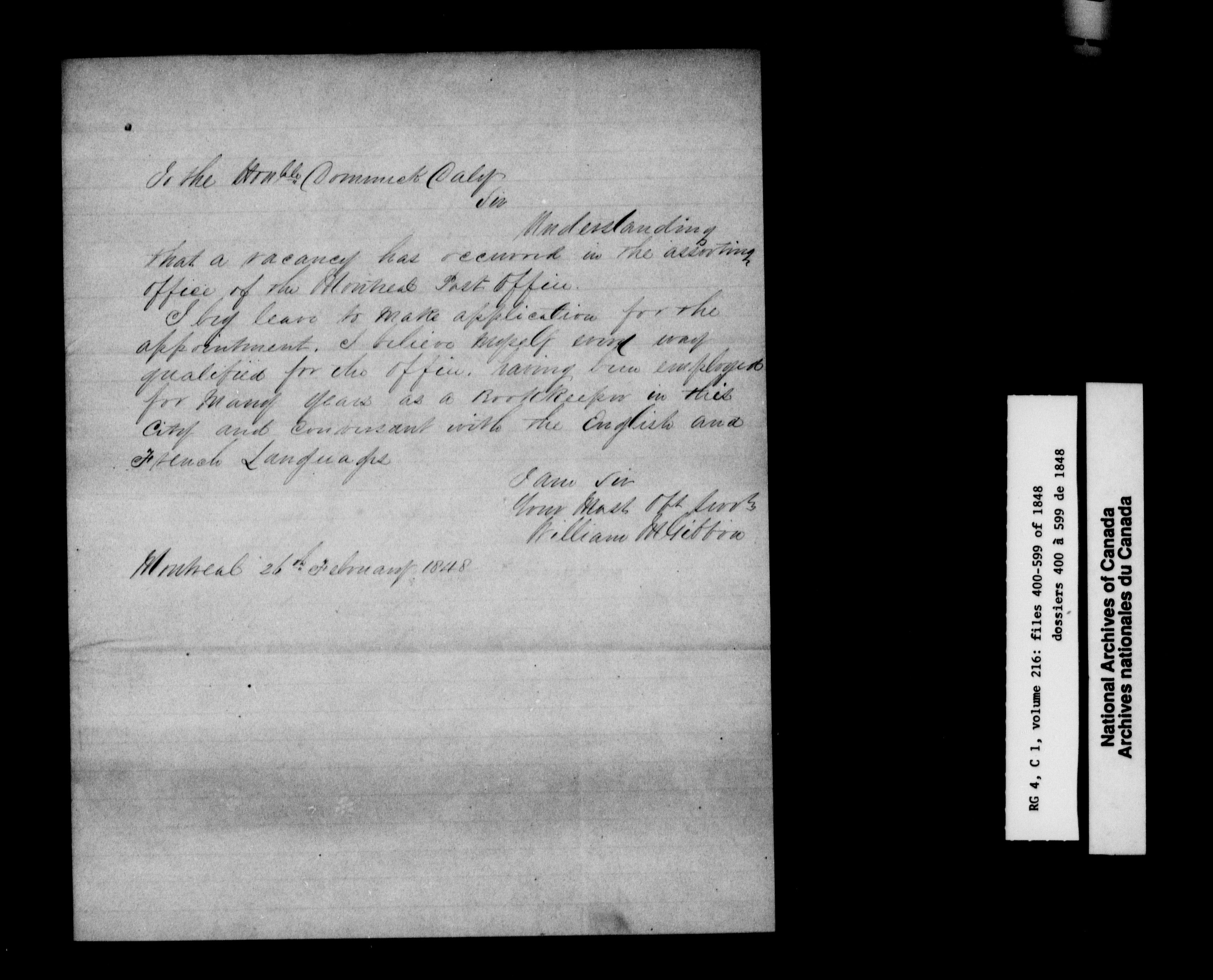 Canada East : Provincial Secretary numbered correspondence files, 1839-1867 - 2592