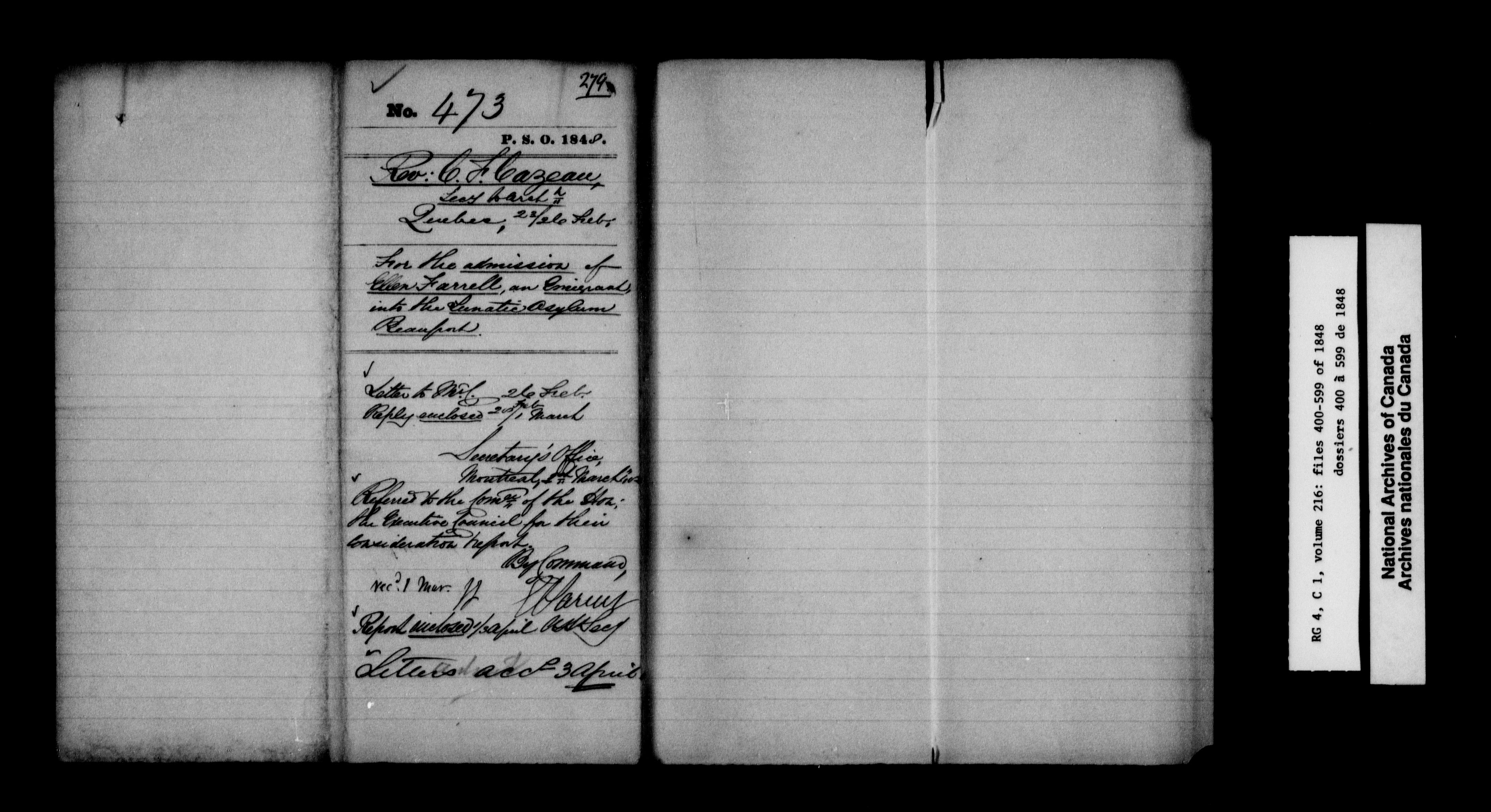 Canada East : Provincial Secretary numbered correspondence files, 1839-1867 - 2592