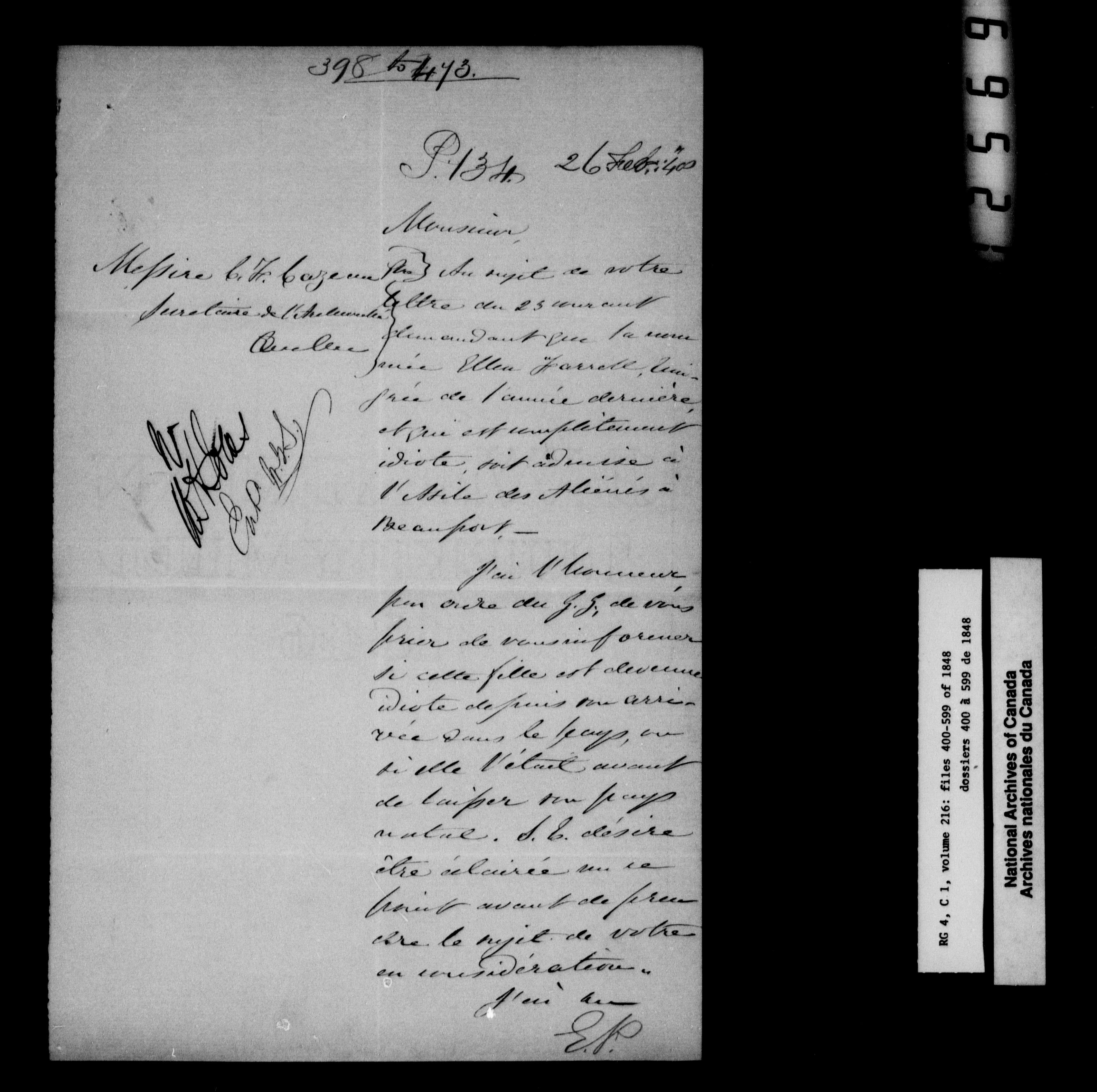 Canada East : Provincial Secretary numbered correspondence files, 1839-1867 - 2592